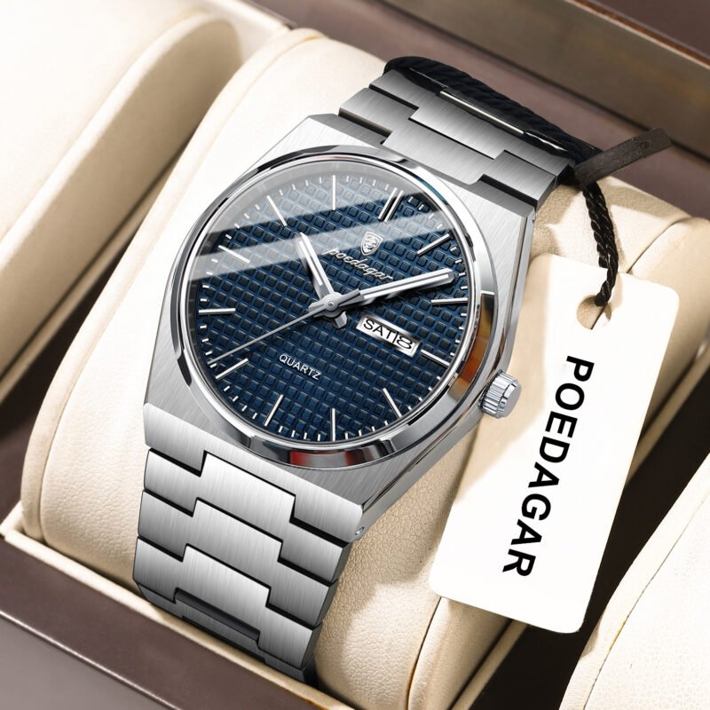 POEDAGAR 924 Men’s Luxury Watch – Stainless Steel Sport Quartz Watch with Luminous Date Display, Waterproof 30m, Fashion Business Watch,Homege Watch