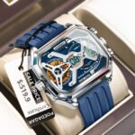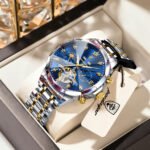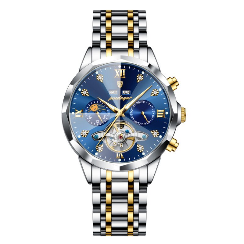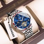 POEDAGAR 1418 Men’s Automatic Mechanical Watch – Original Synthetic-Sapphire Under $200 Skeleton Design, Full Calendar Luminous Hands, 30M Waterproof Stainless Steel Strap luxury watches for men Business/Daily Wear