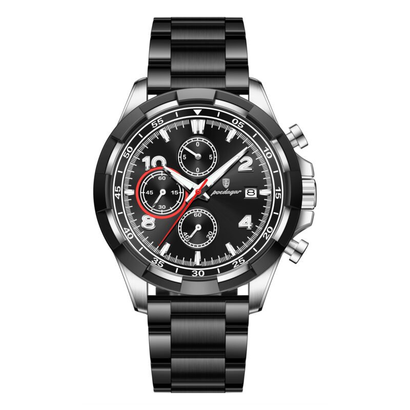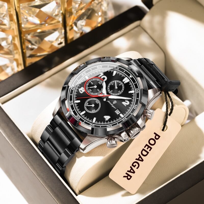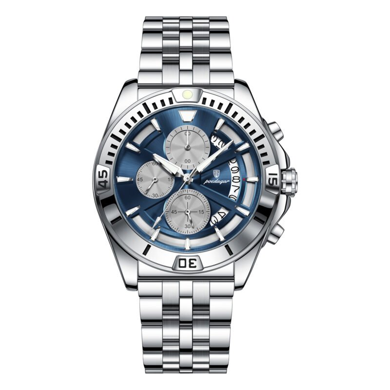 Elevate your style with the POEDAGAR 892 2025, a bold chronograph quartz watch designed for the modern man. Featuring an oversized luminous dial, stainless steel strap, and automatic date function, this 30M waterproof timepiece perfectly blends business elegance with sporty flair. Durable, precise, and versatile