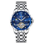 POEDAGAR 1415 Men’s Luxury Skeleton Tourbillon Automatic Watch – Stainless Steel Waterproof Mechanical Wristwatch with Luminous Hands & Gift Box | Best Automatic Watches Under $1000