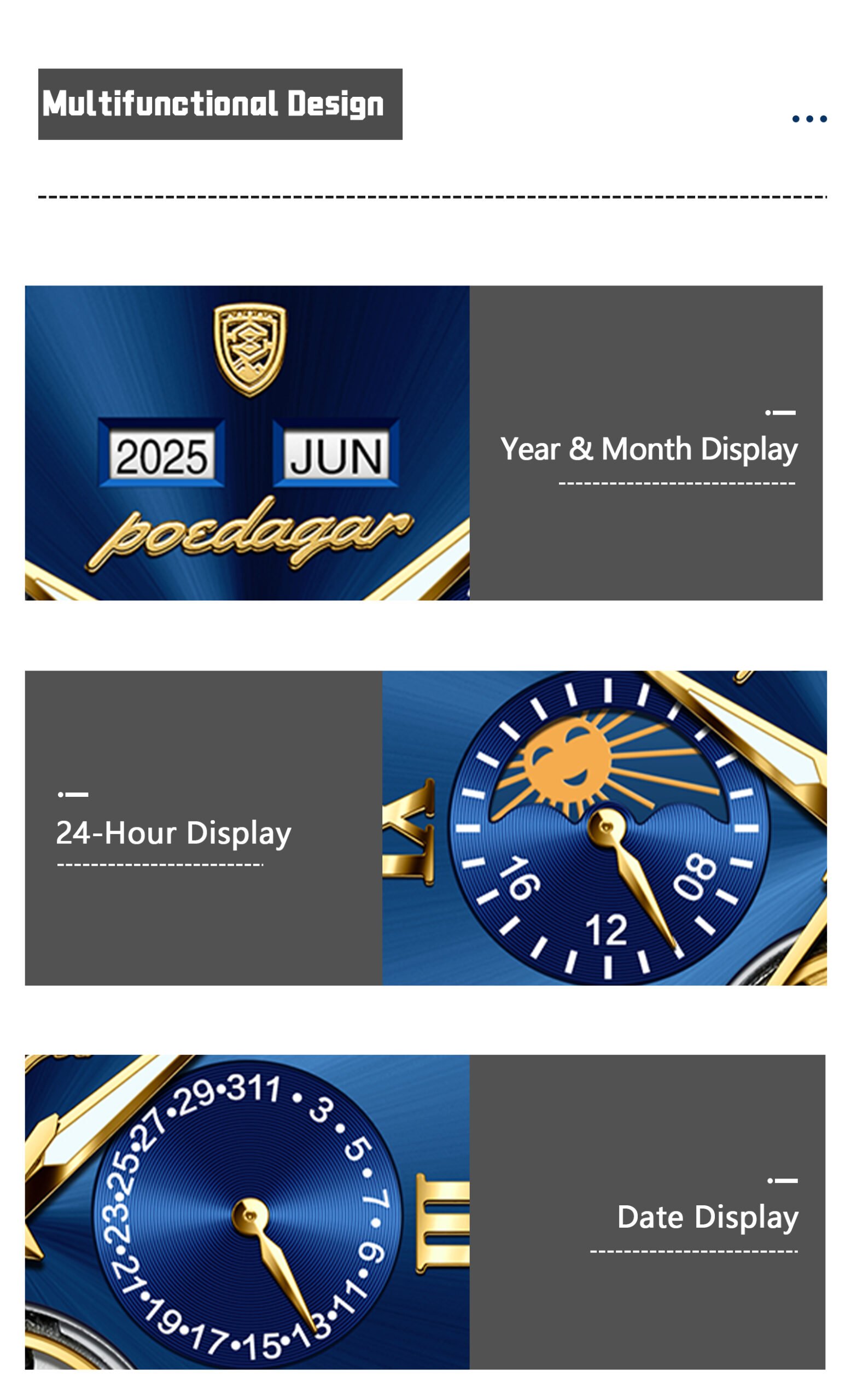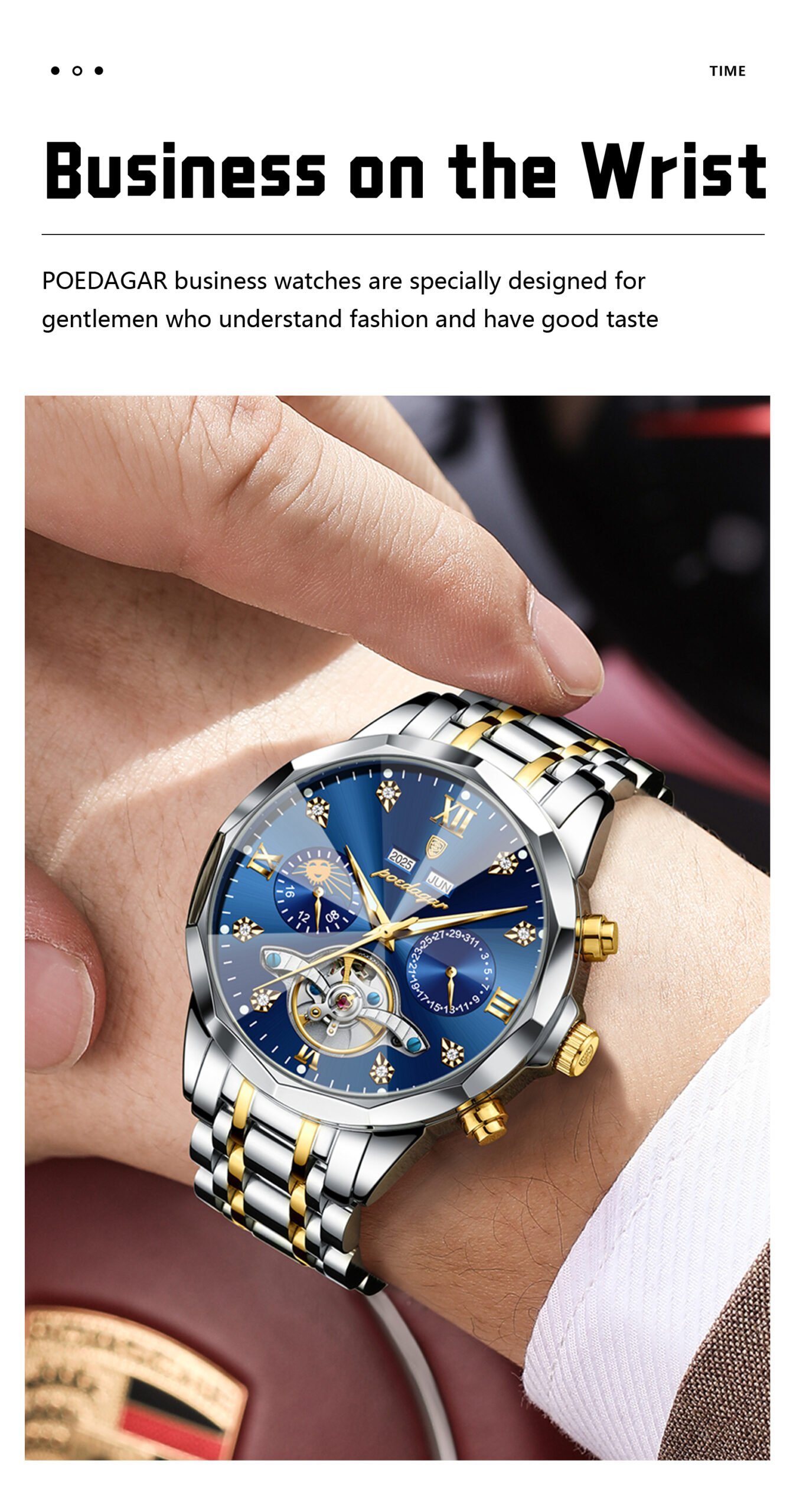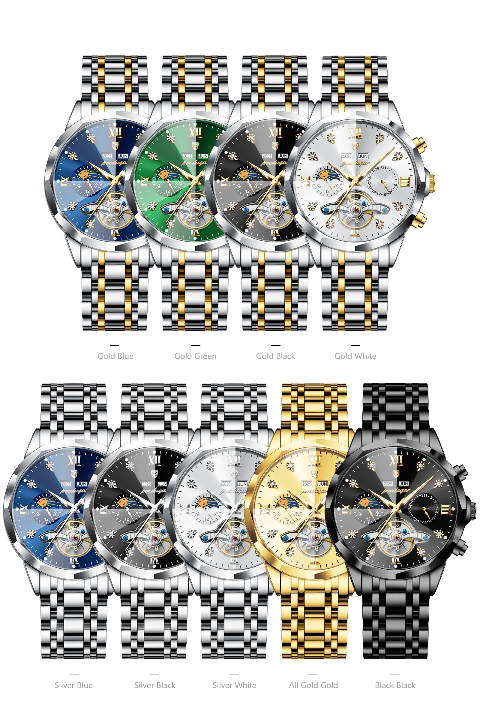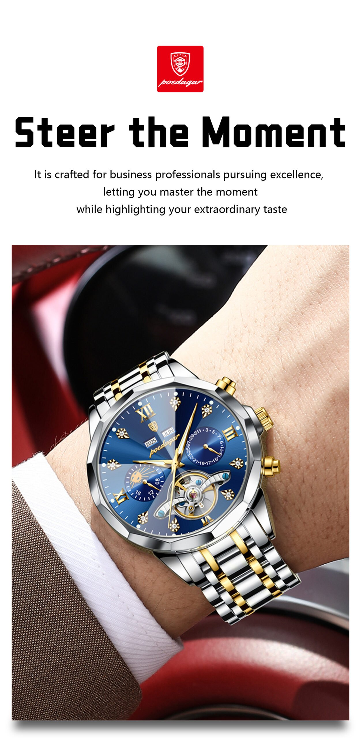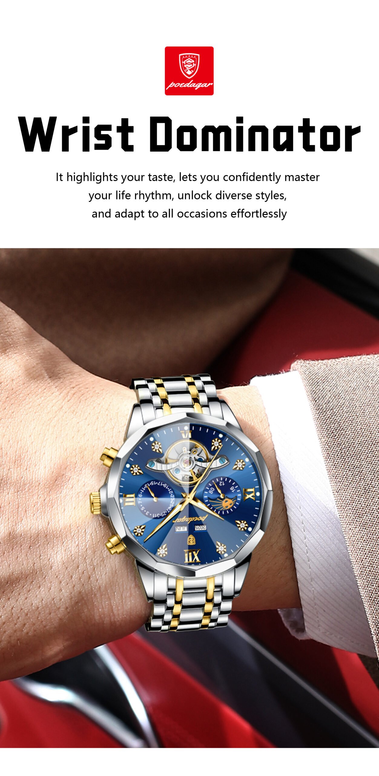 Every Poedagar watch is thoughtfully designed to blend classic elegance with modern trends. From durable stainless steel cases to finely-tuned quartz movements, our watches are built to last—and built to impress. Whether you're dressing for a boardroom, a night out, or your next adventure, there's a Poedagar timepiece made to complement your moment.