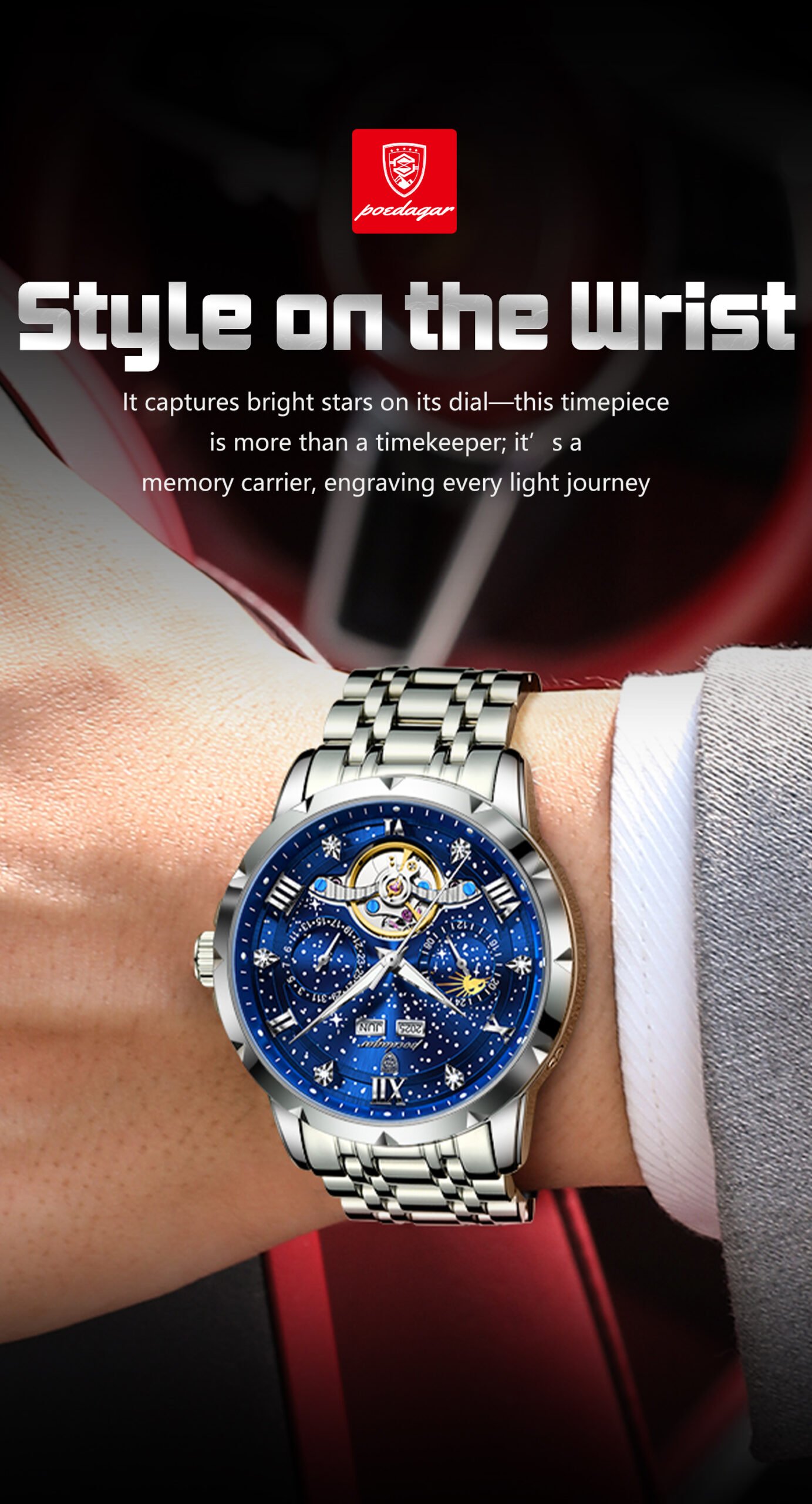 Every Poedagar watch is thoughtfully designed to blend classic elegance with modern trends. From durable stainless steel cases to finely-tuned quartz movements, our watches are built to last—and built to impress. Whether you're dressing for a boardroom, a night out, or your next adventure, there's a Poedagar timepiece made to complement your moment.