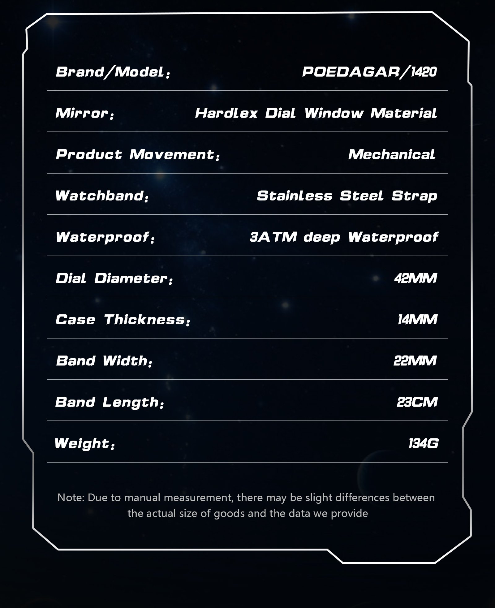 POEDAGAR 1420 Top Original Men Clock Automatic Mechanical Stainless Steel Men's Watches Calendar Hollow Tourbillon Man Watch Male POEDAGAR 1420 Top Original Men Clock Automatic Mechanical Stainless Steel Men's Watches Calendar Hollow Tourbillon Man Watch Male
