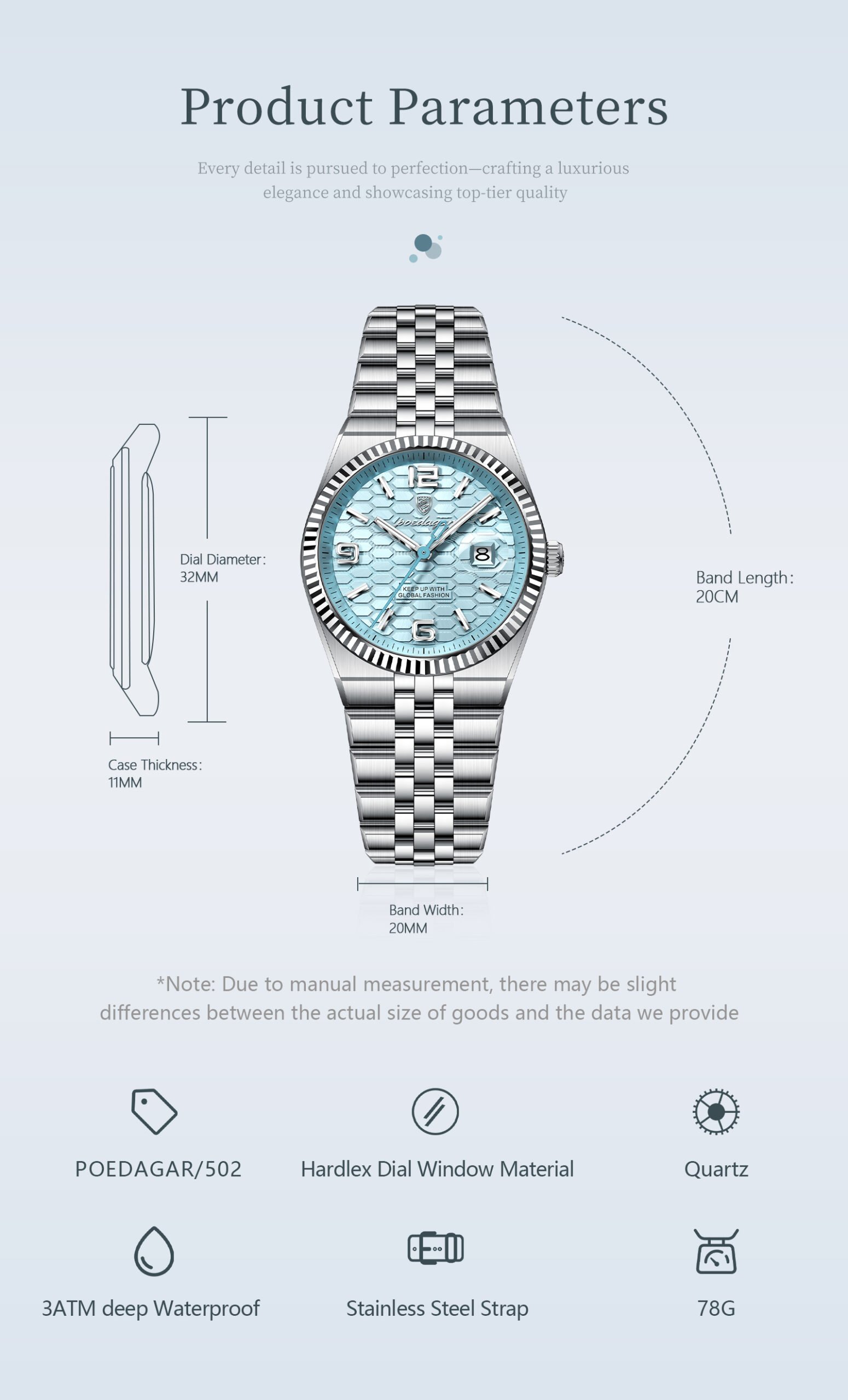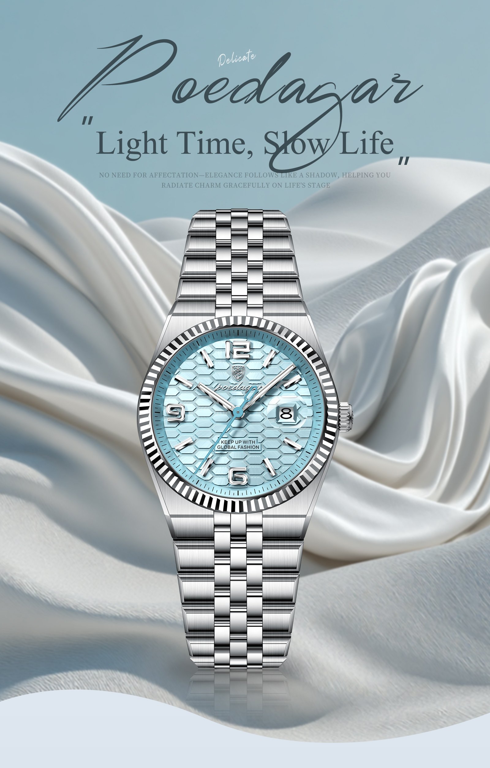 Every Poedagar watch is thoughtfully designed to blend classic elegance with modern trends. From durable stainless steel cases to finely-tuned quartz movements, our watches are built to last—and built to impress. Whether you're dressing for a boardroom, a night out, or your next adventure, there's a Poedagar timepiece made to complement your moment.