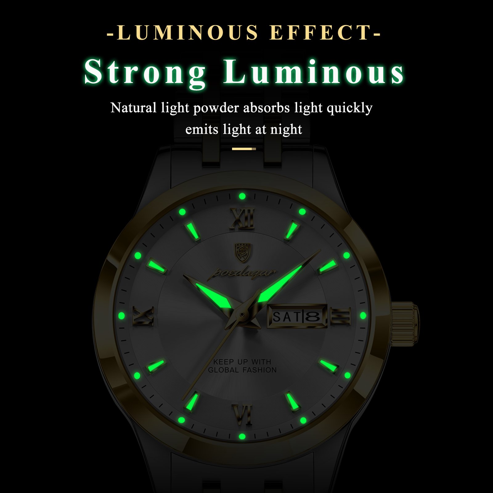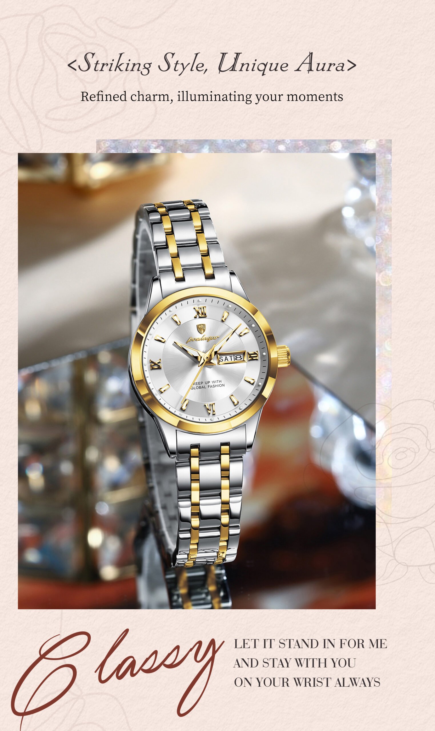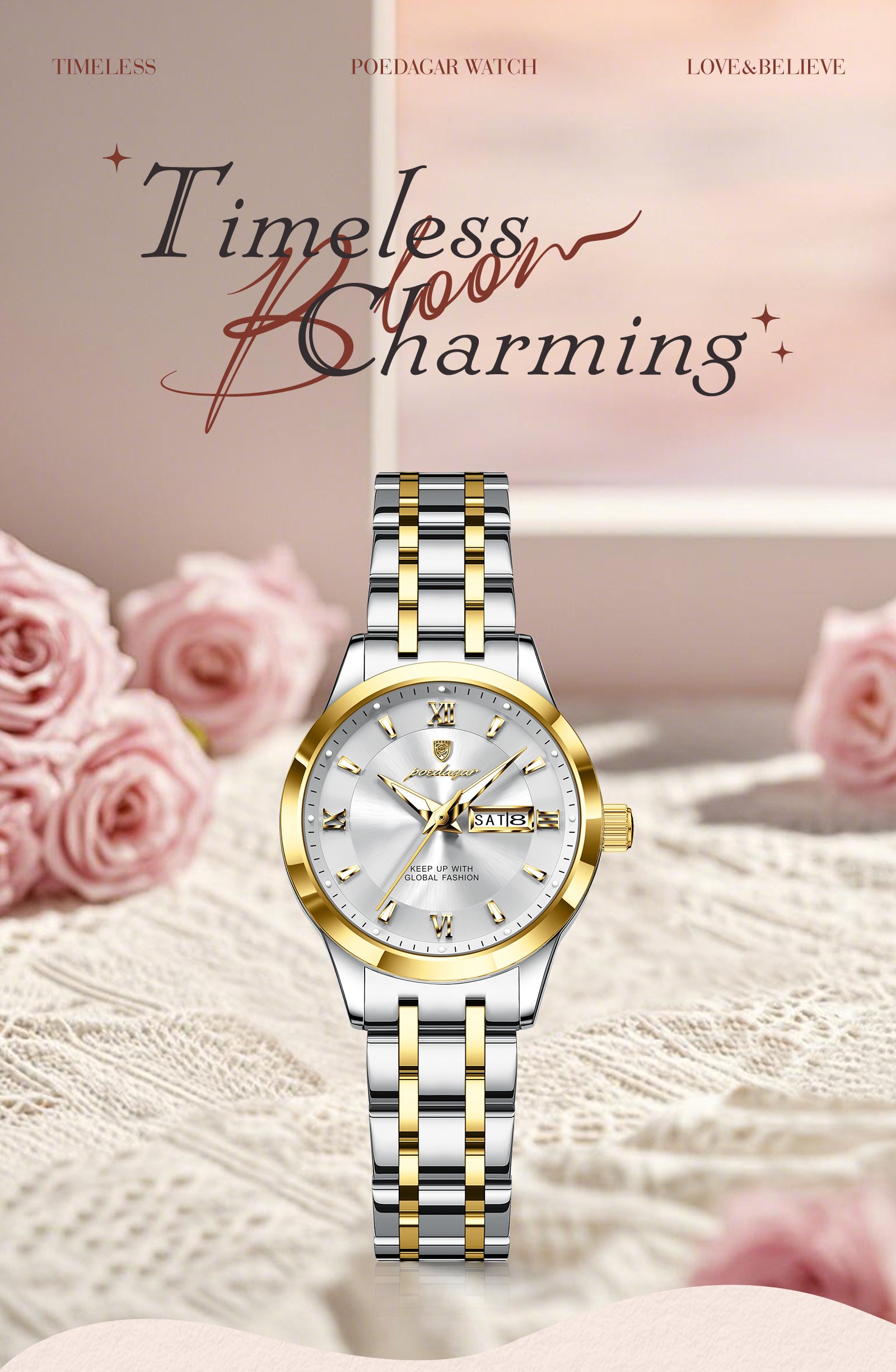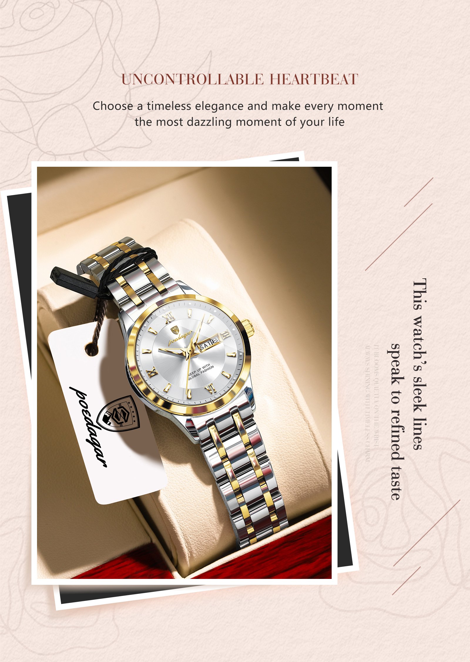 POEDAGAR 306 Luxury Quartz Watch for Ladies Waterproof Luminous Date Week Stainless Steel Watches Elegant Dress Wristwatch