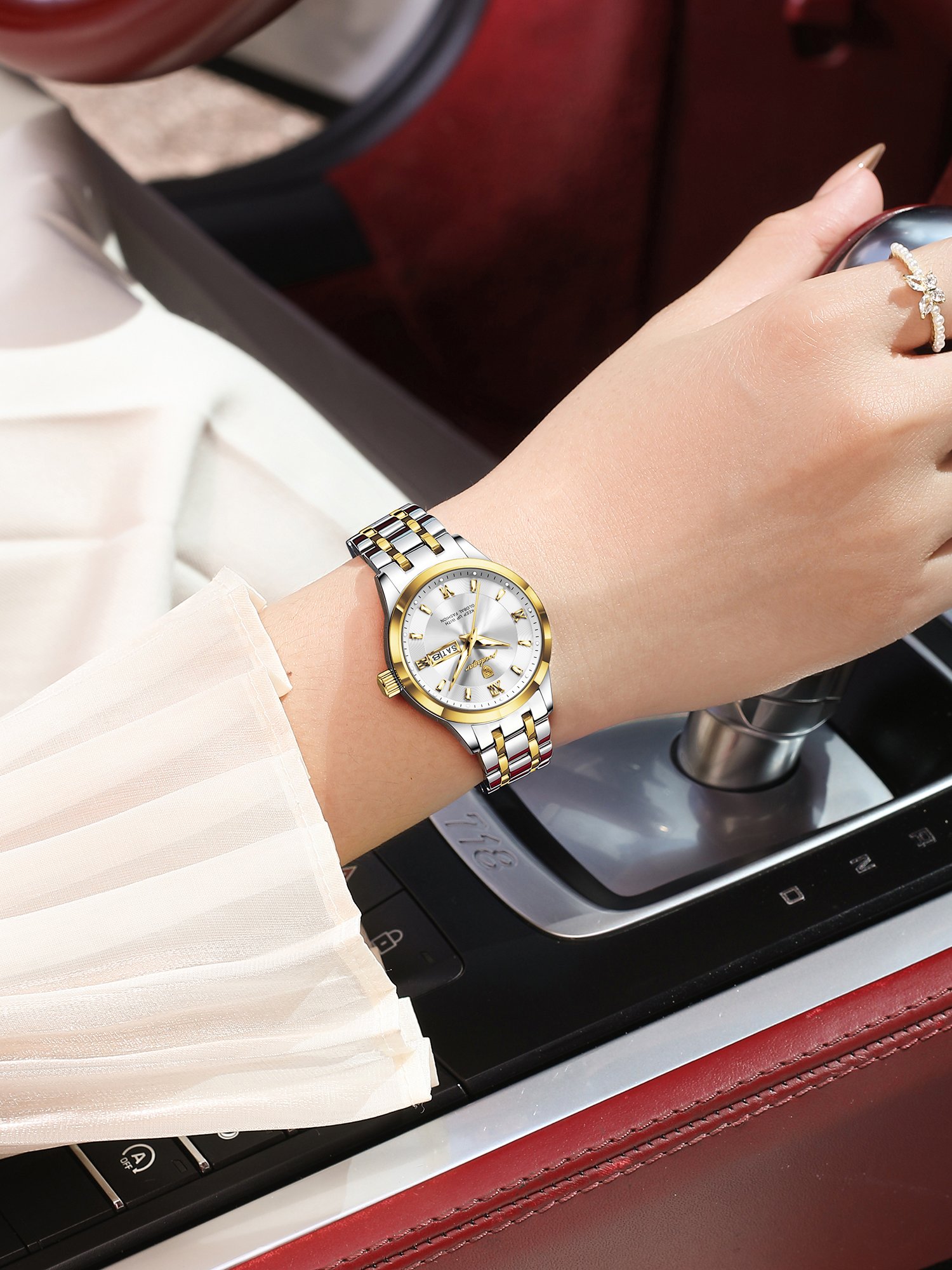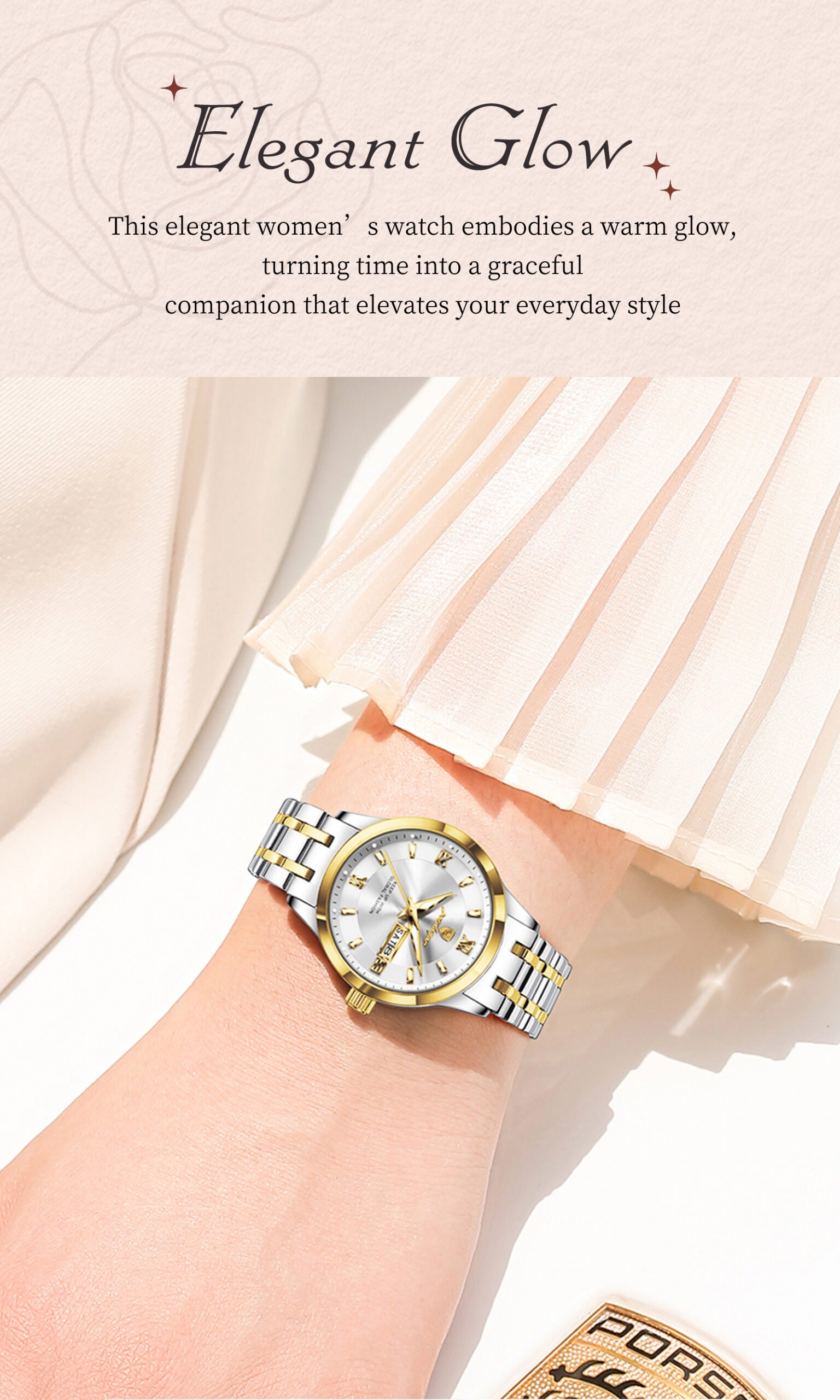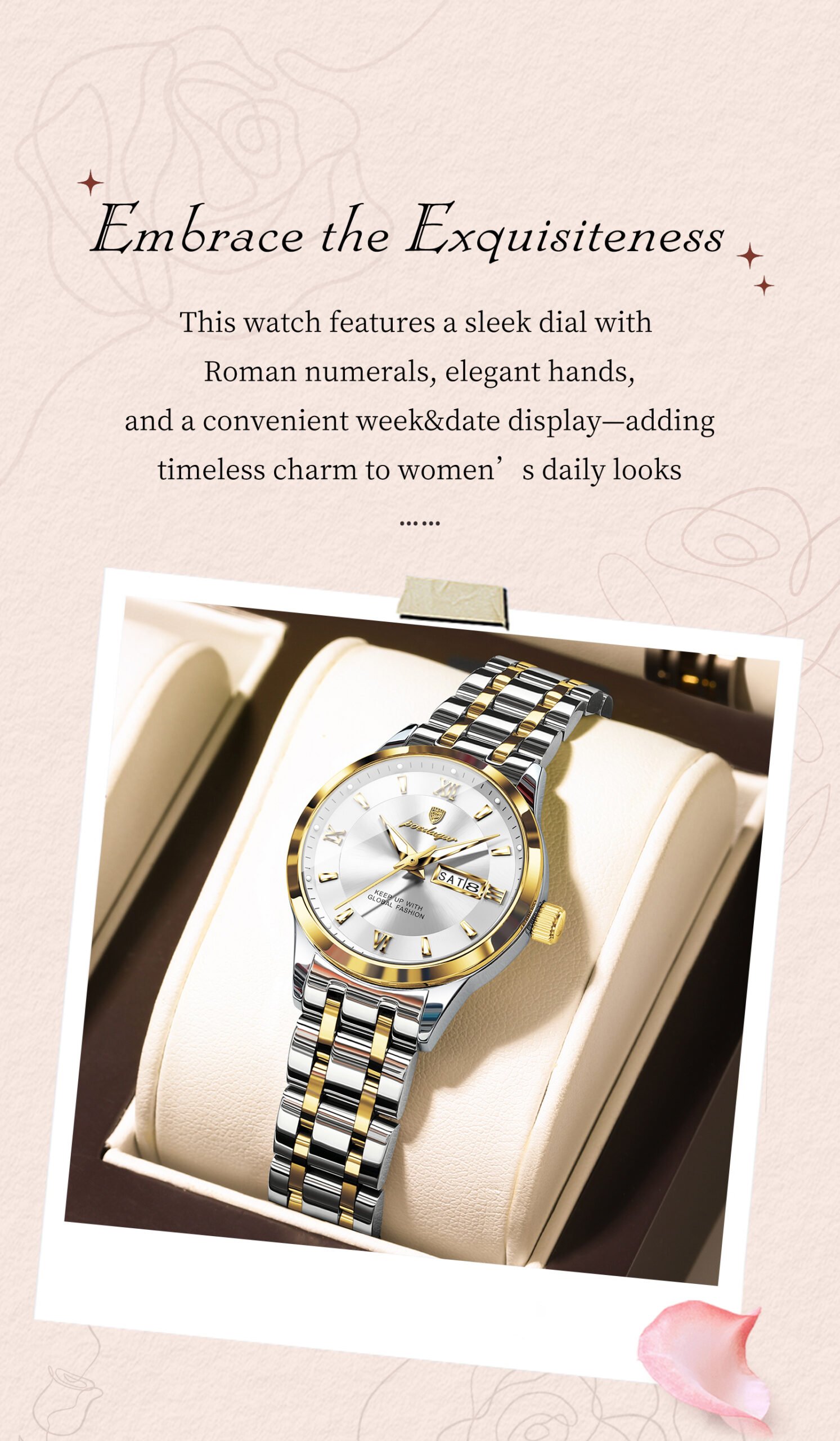 POEDAGAR 306 Luxury Quartz Watch for Ladies Waterproof Luminous Date Week Stainless Steel Watches Elegant Dress Wristwatch