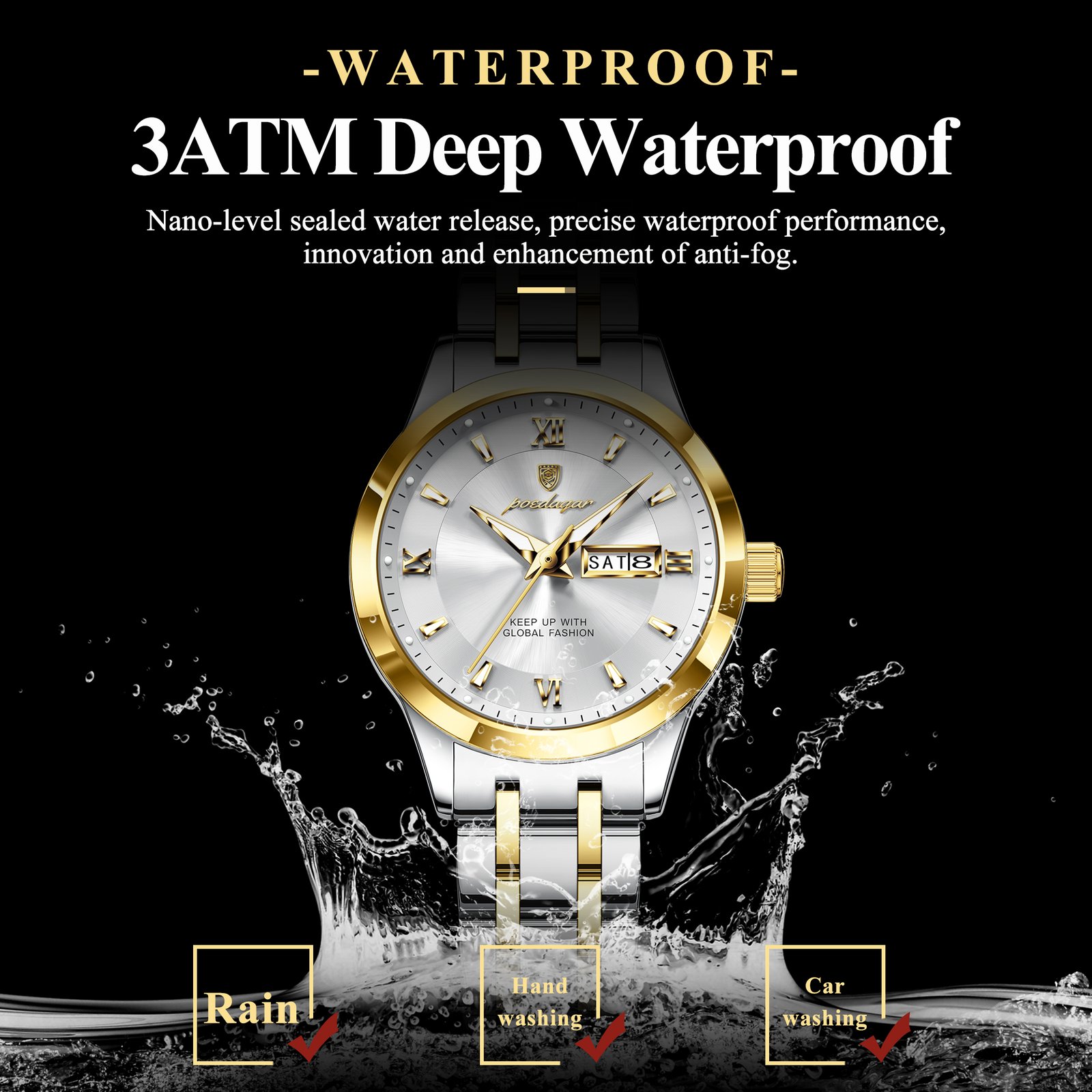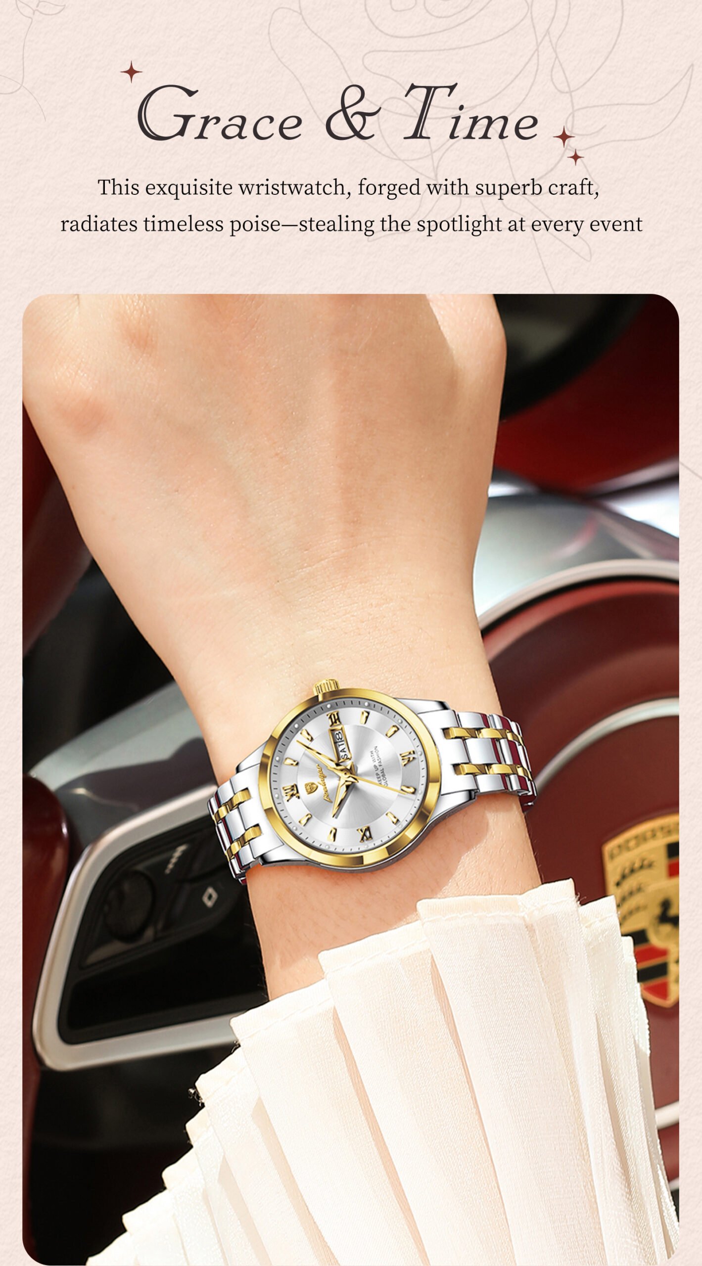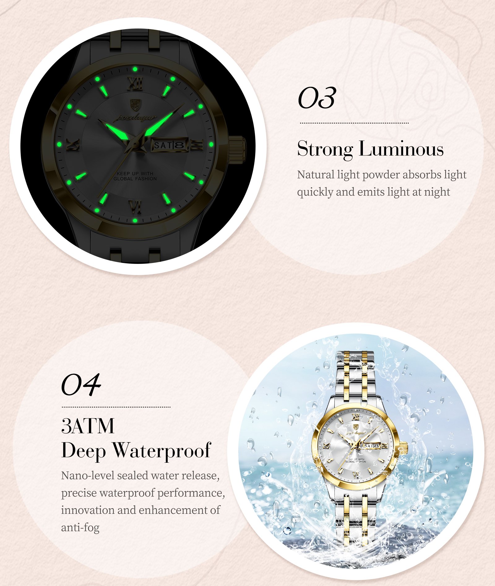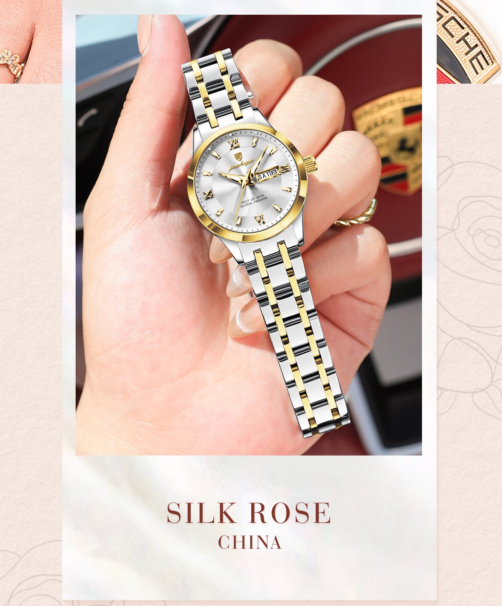 POEDAGAR 306 Luxury Quartz Watch for Ladies Waterproof Luminous Date Week Stainless Steel Watches Elegant Dress Wristwatch