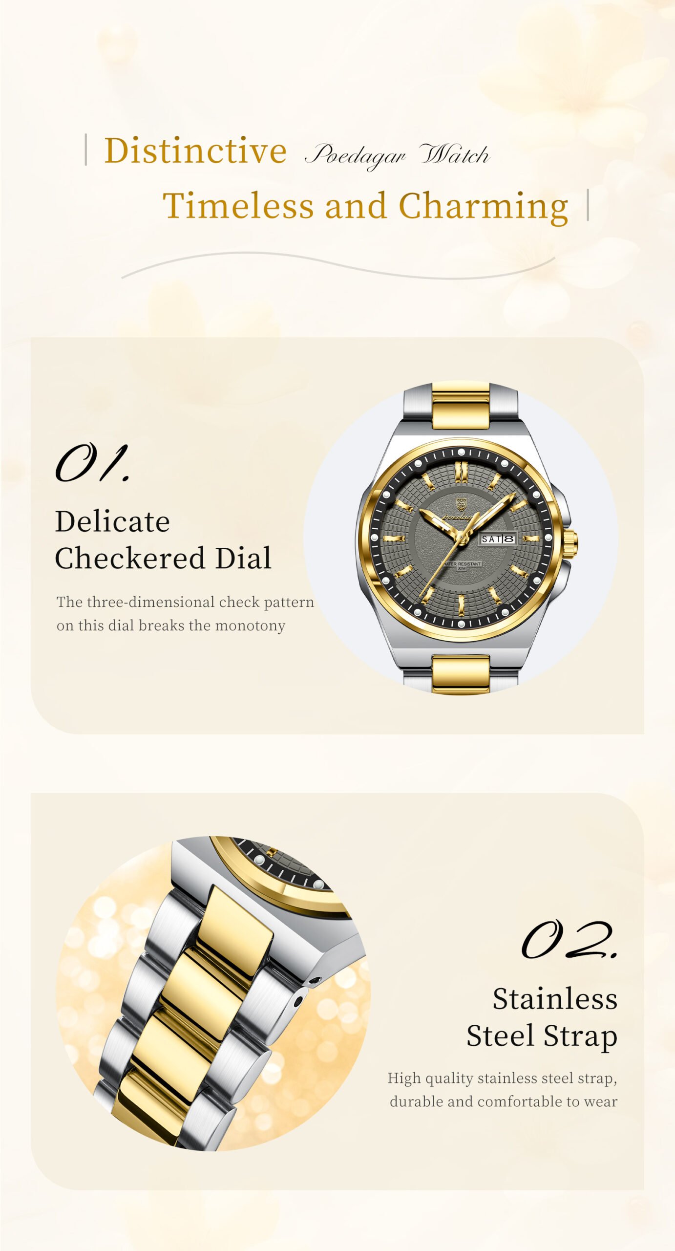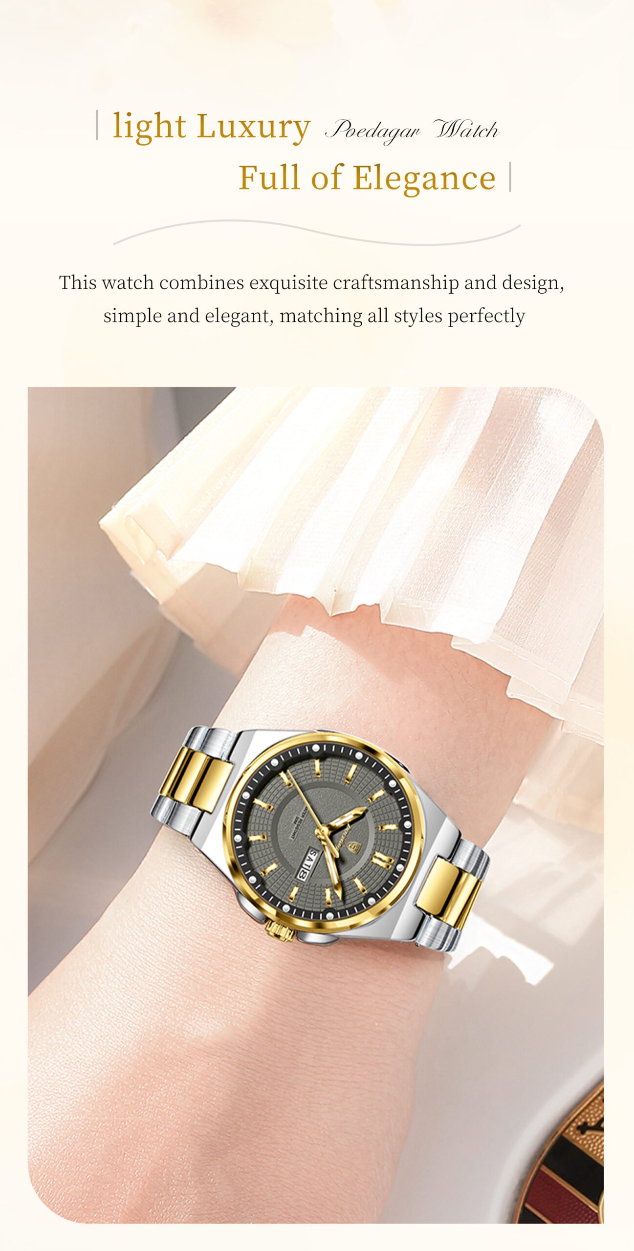 Every Poedagar watch is thoughtfully designed to blend classic elegance with modern trends. From durable stainless steel cases to finely-tuned quartz movements, our watches are built to last—and built to impress. Whether you're dressing for a boardroom, a night out, or your next adventure, there's a Poedagar timepiece made to complement your moment.