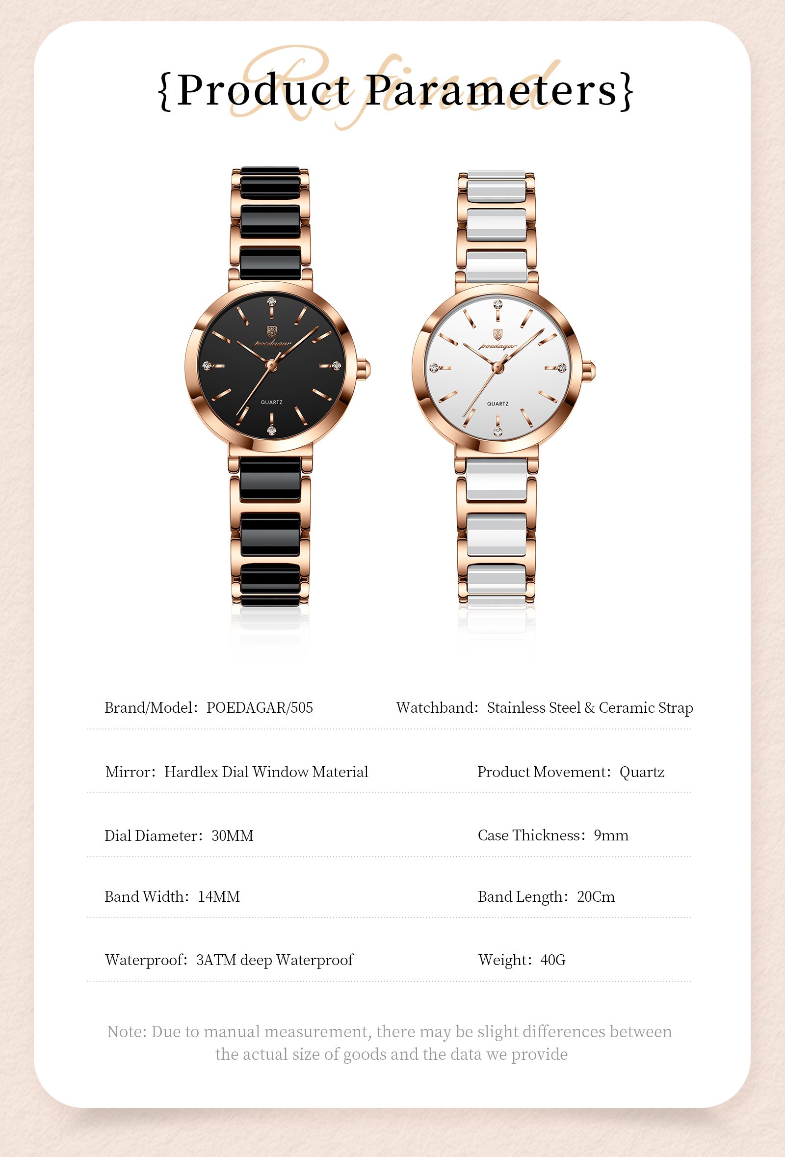 | Color | 505 Rose Gold Black, 505 RoseGold White |