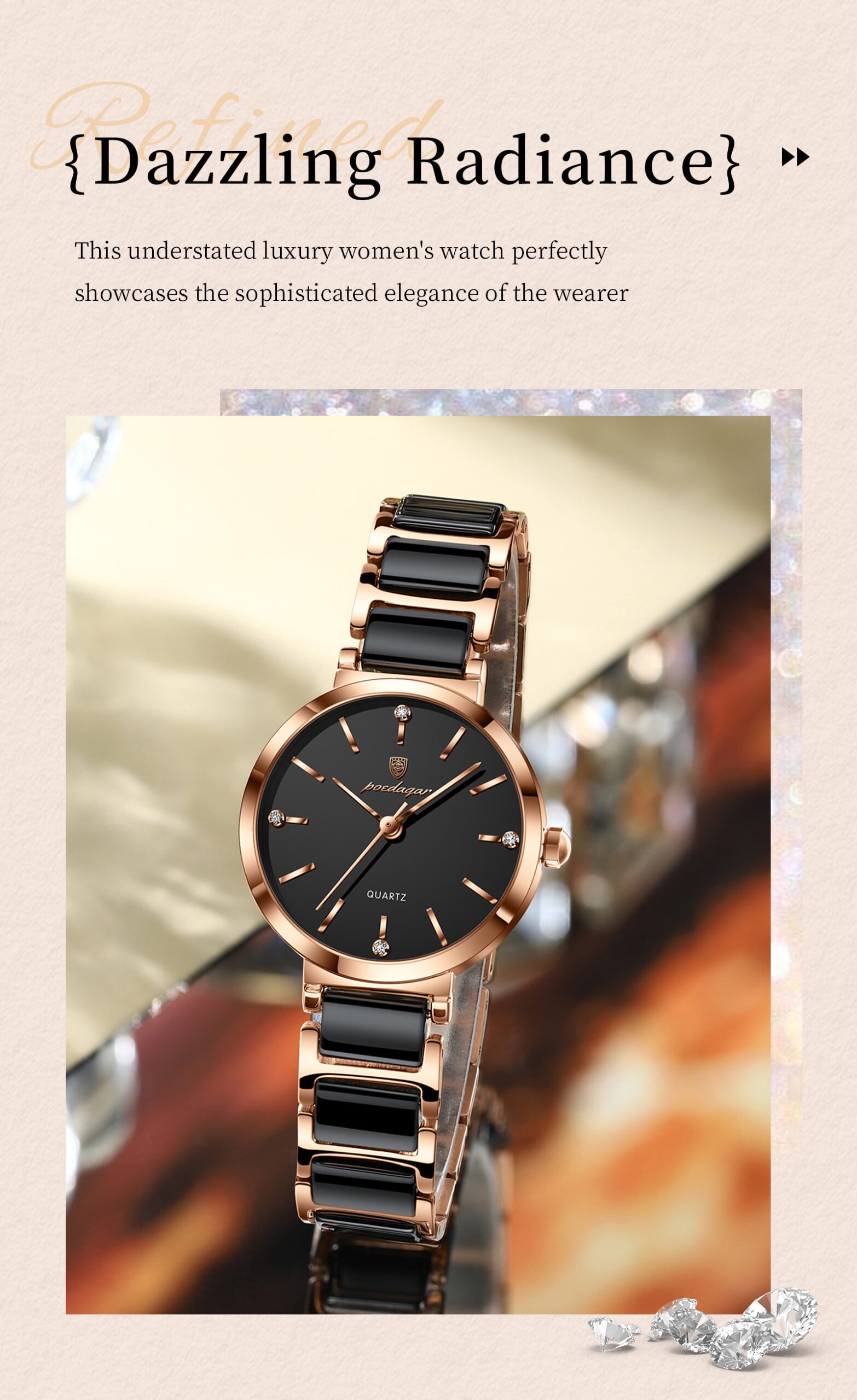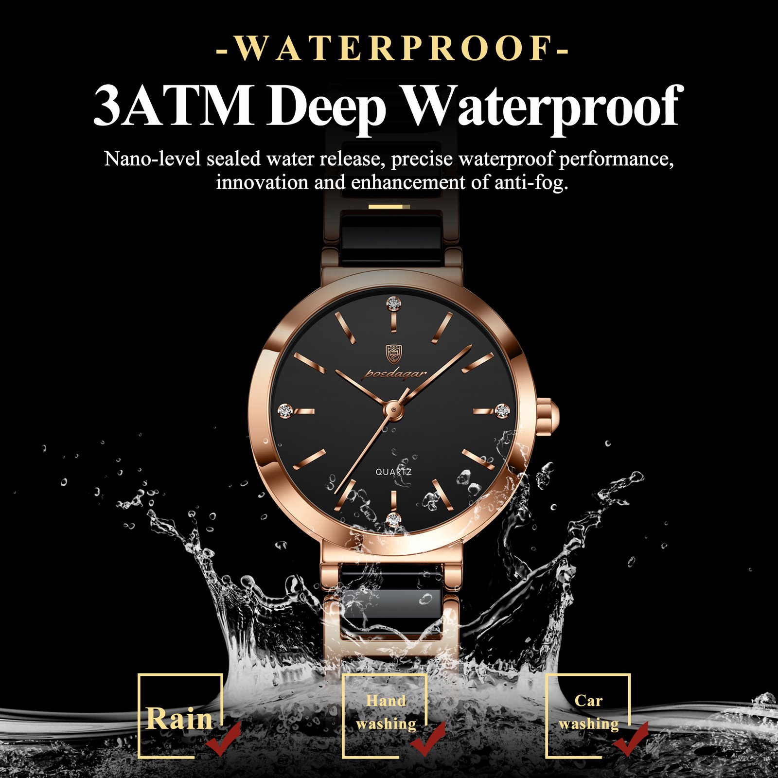 POEDAGAR 505 Fashion Women Watches Relogio Feminino Luxury Rose Gold Watch Ladies Quartz Wrist Watch Ceramic Strap Clock Reloj