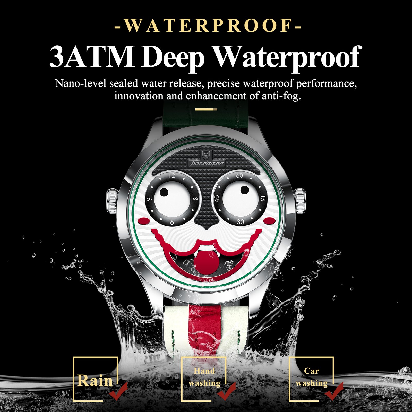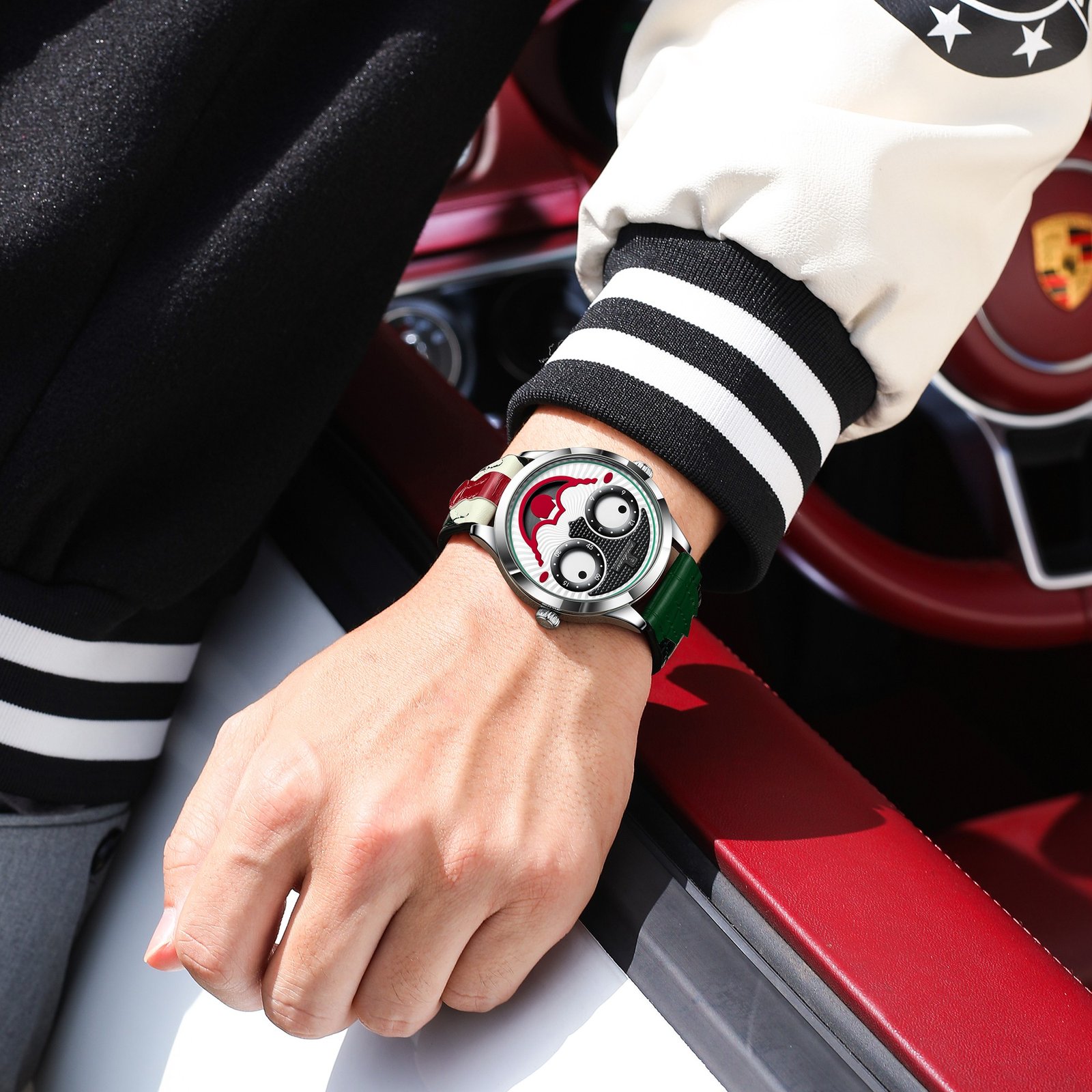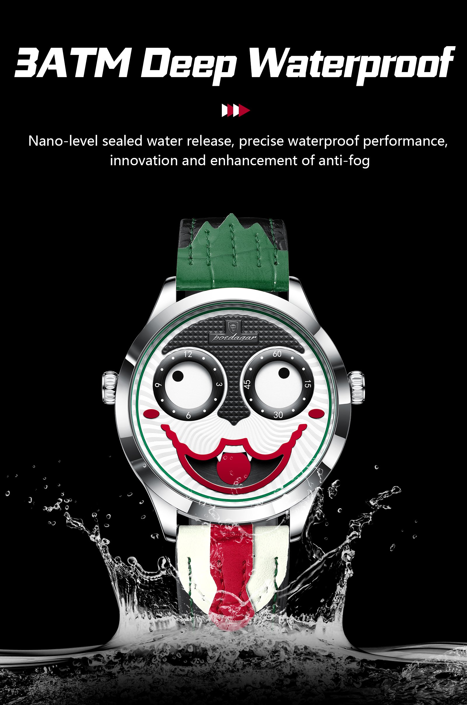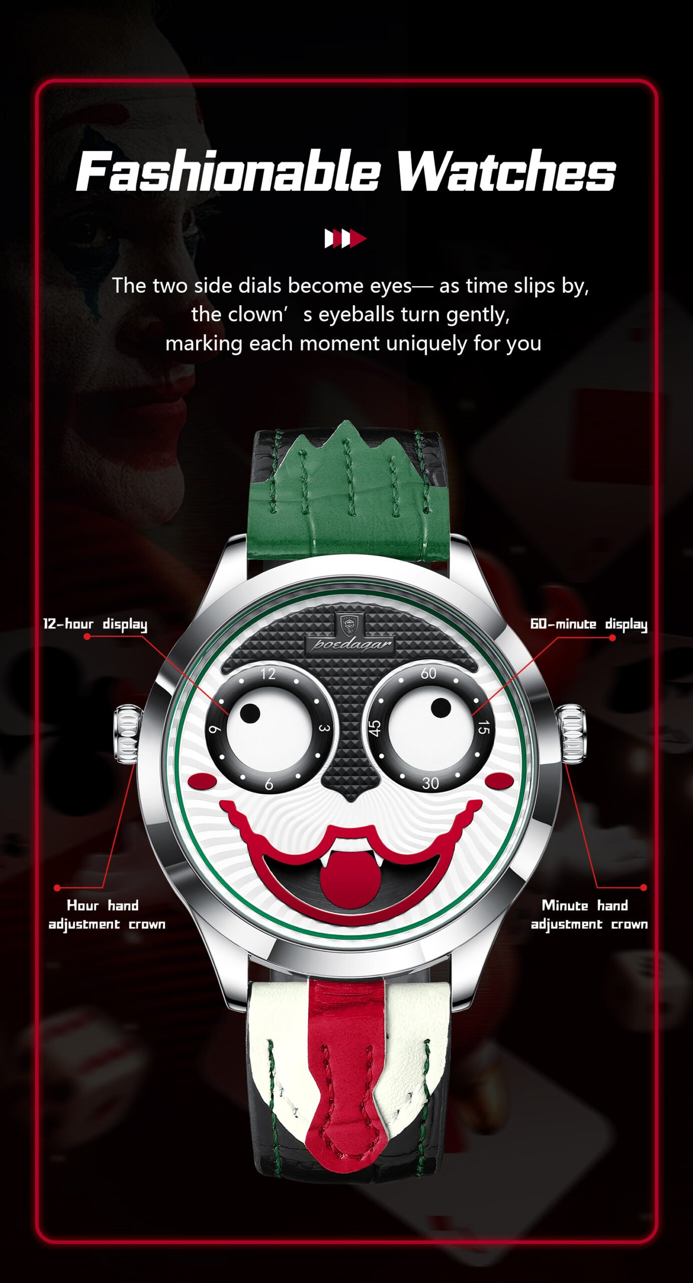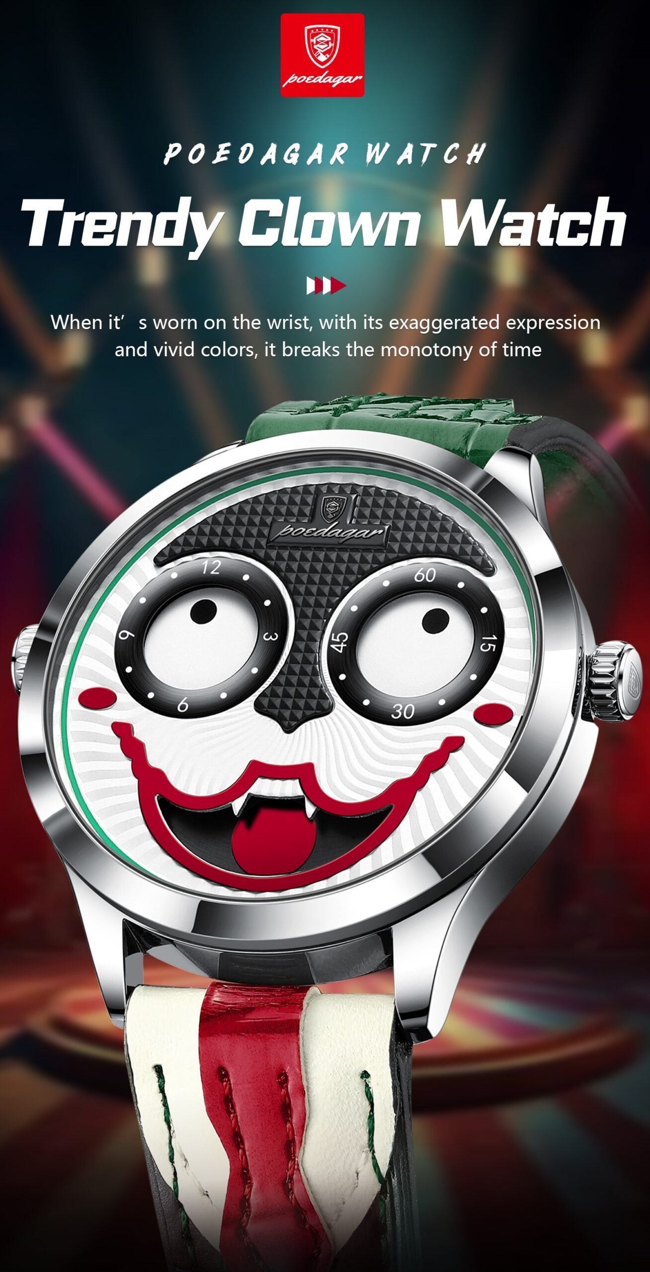 POEDAGAR 676 Clown Halloween Style Top Original Watch For Man Luxury High Quality Waterproof Man Wristwatch Quartz Leather Men's Sports Watches Male Reloj
