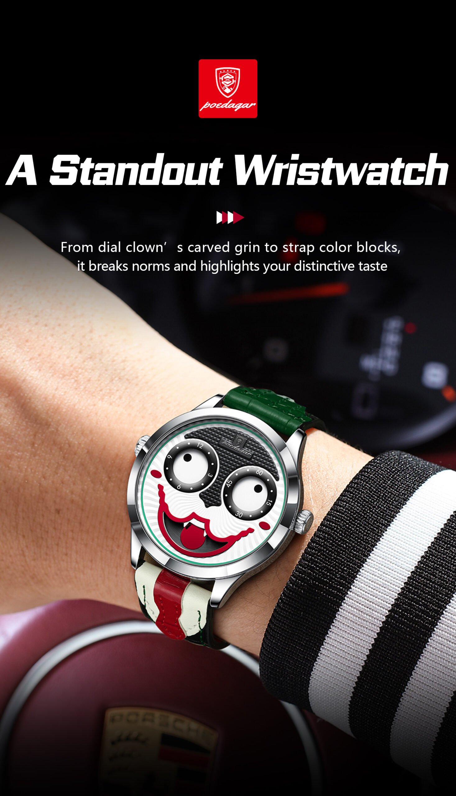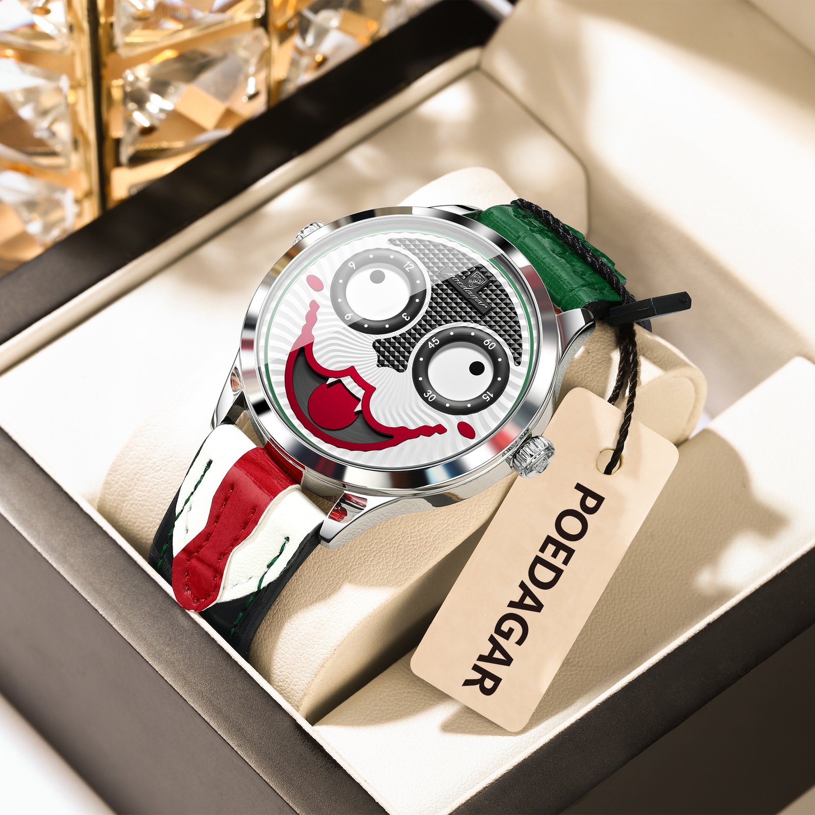 POEDAGAR 676 Clown Halloween Style Top Original Watch For Man Luxury High Quality Waterproof Man Wristwatch Quartz Leather Men’s Sports Watches Male Reloj