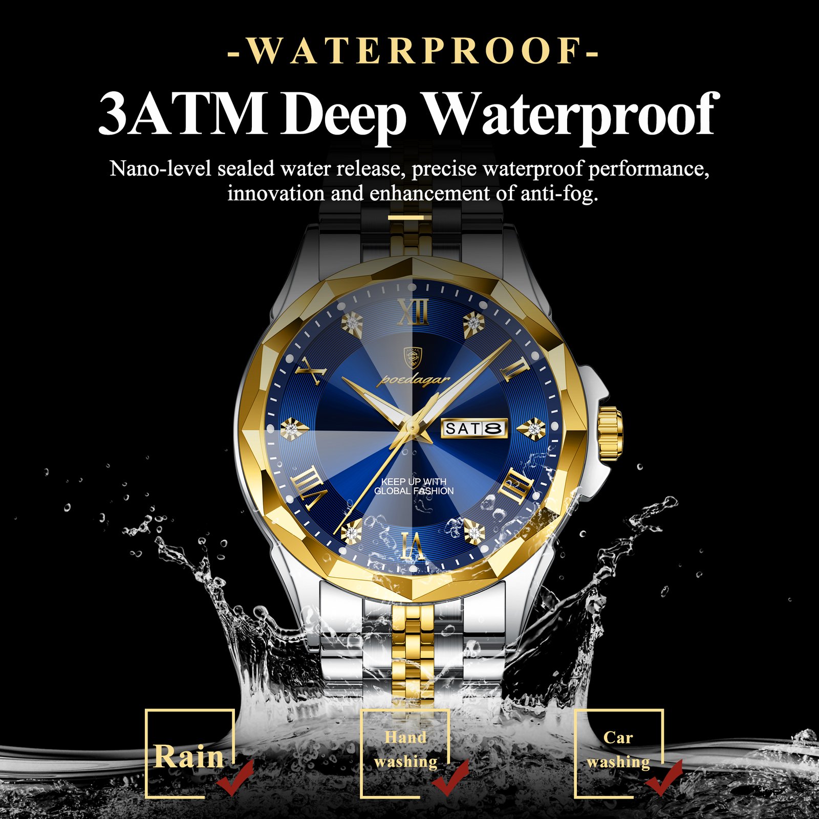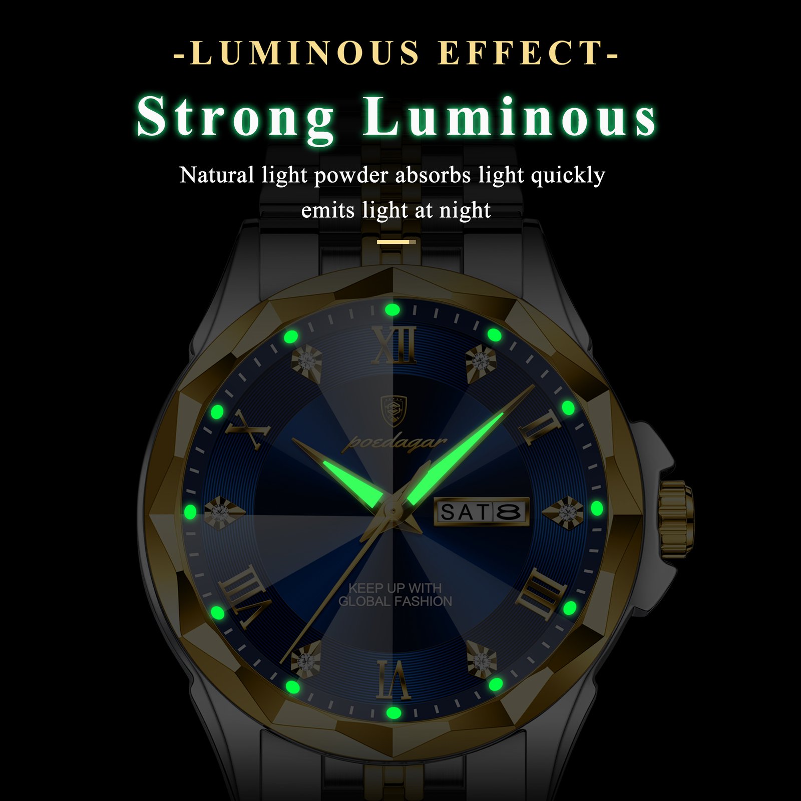 POEDAGAR 698 Fashion Luxury Men Watch Top Original Waterproof Luminous Date Week Man Wristwatch Stainless Steel Quartz Men's Watches