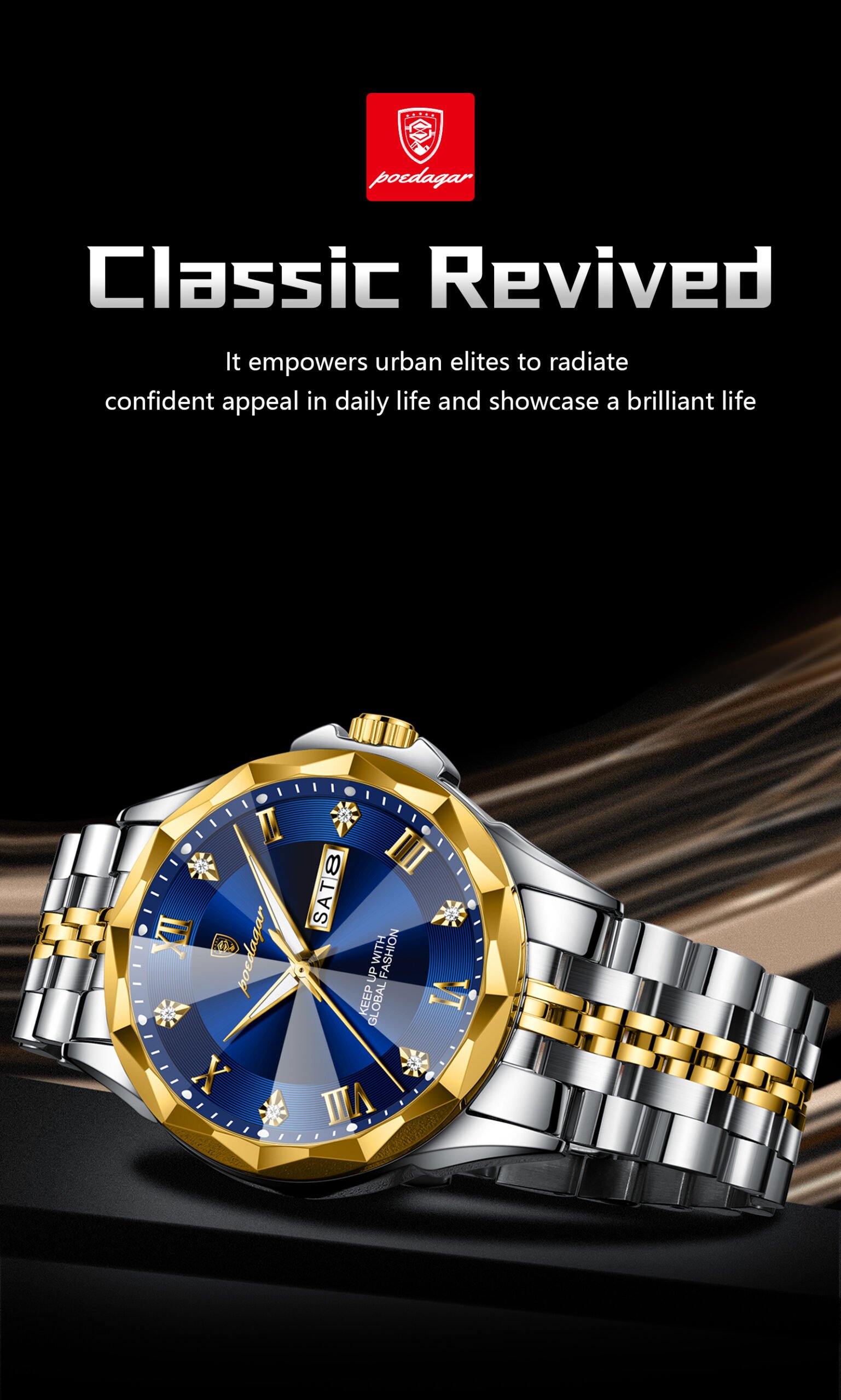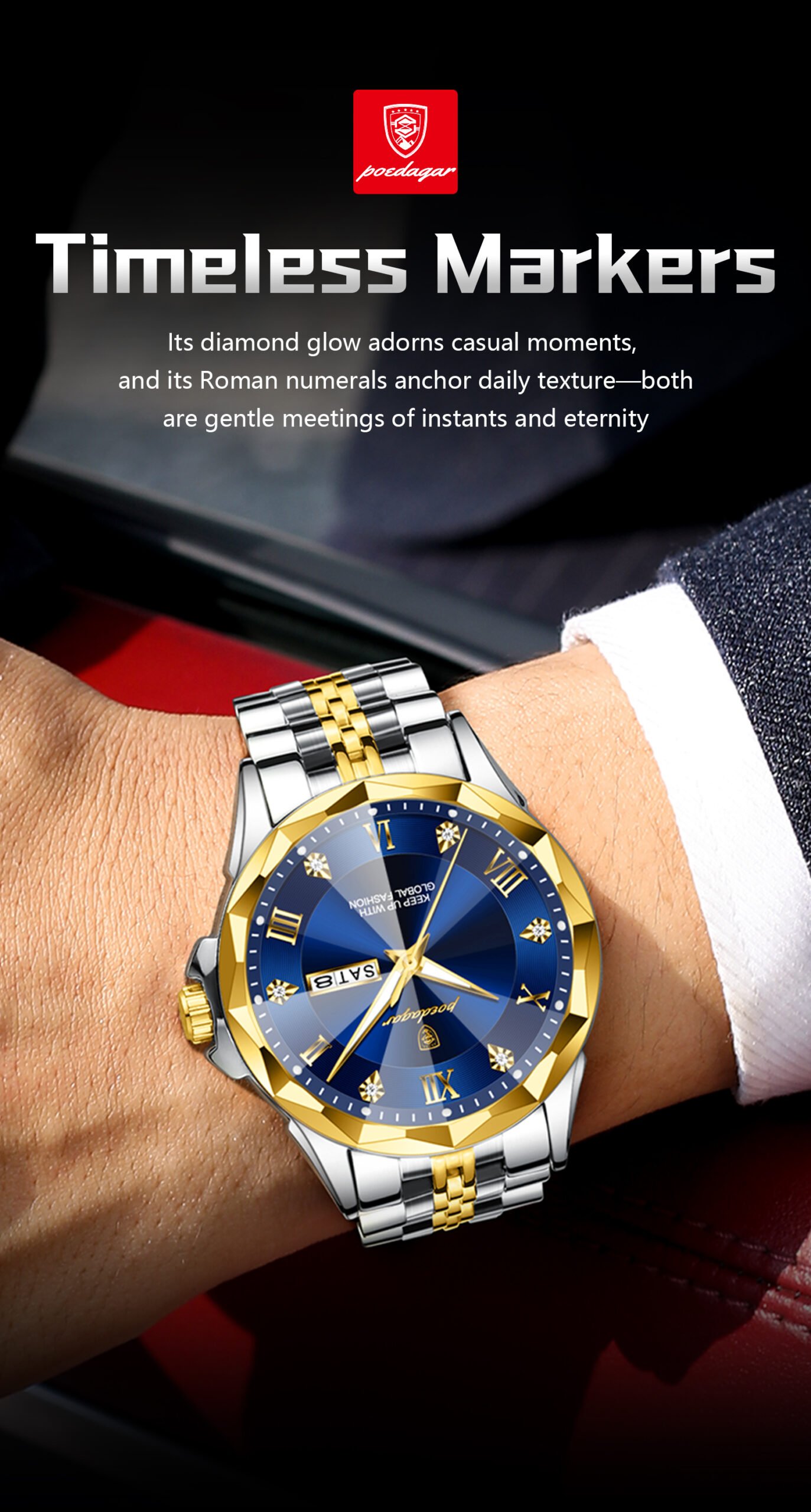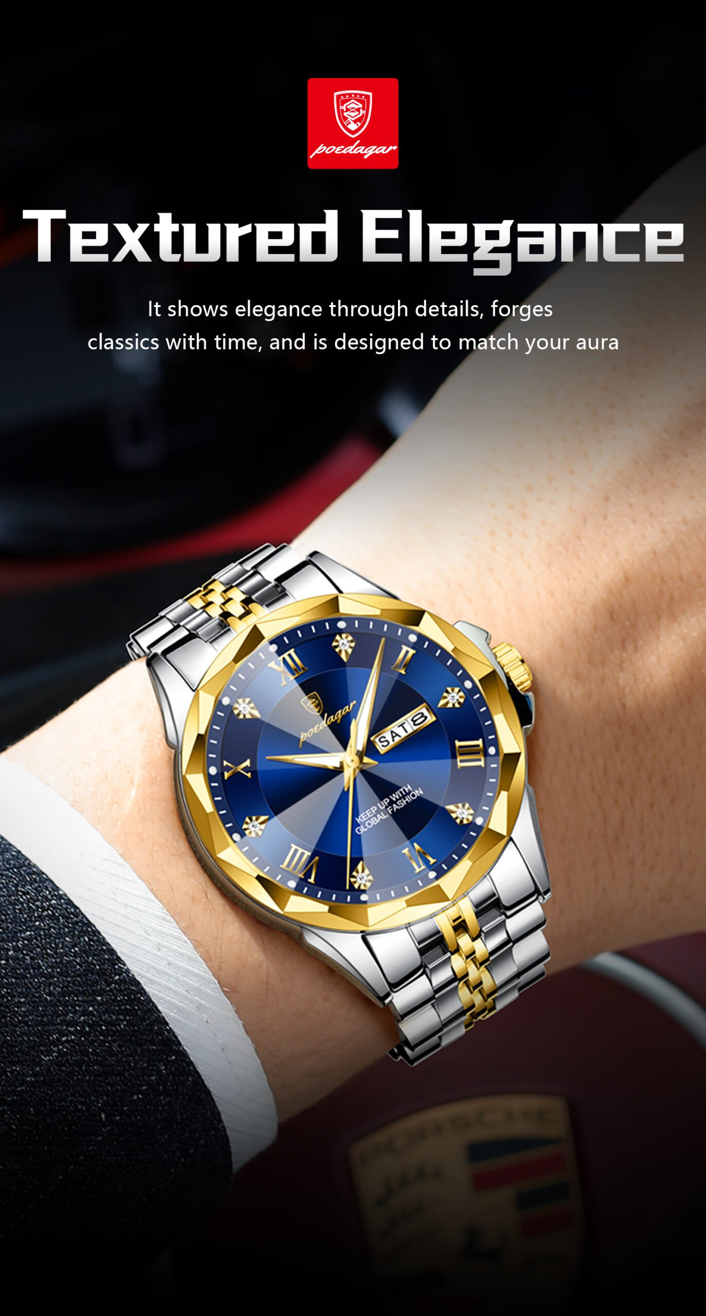 Every Poedagar watch is thoughtfully designed to blend classic elegance with modern trends. From durable stainless steel cases to finely-tuned quartz movements, our watches are built to last—and built to impress. Whether you're dressing for a boardroom, a night out, or your next adventure, there's a Poedagar timepiece made to complement your moment.