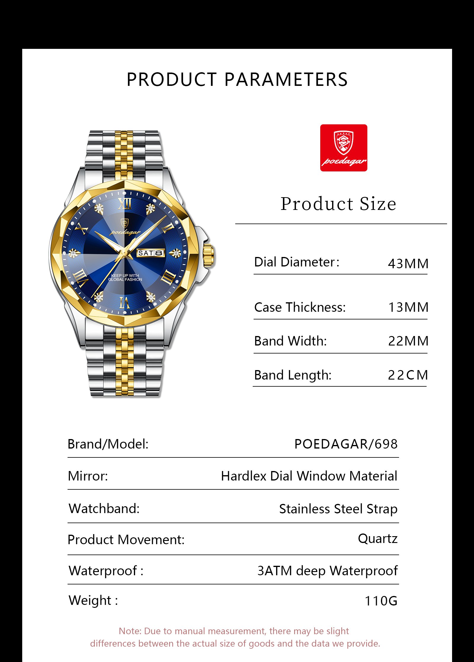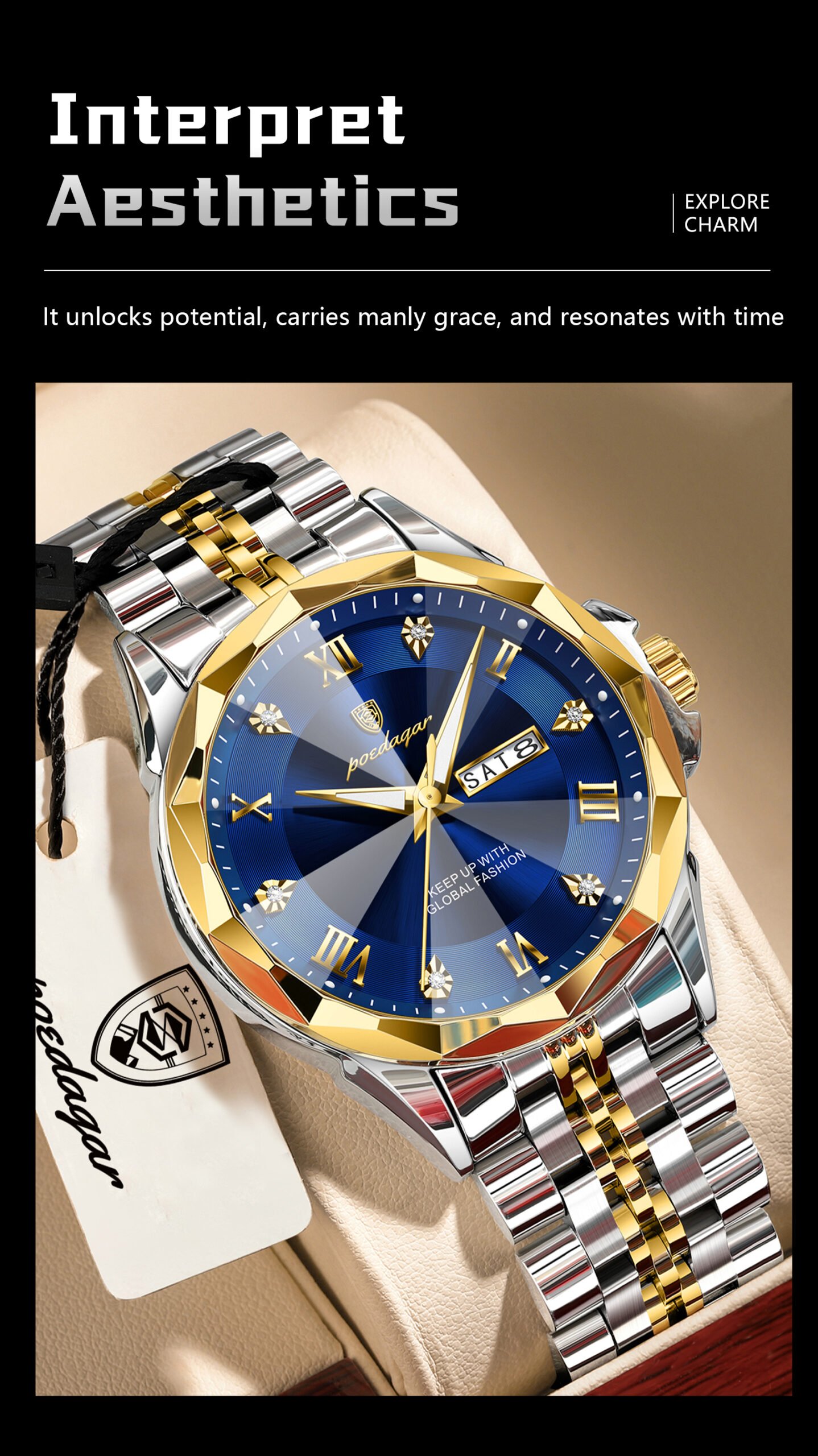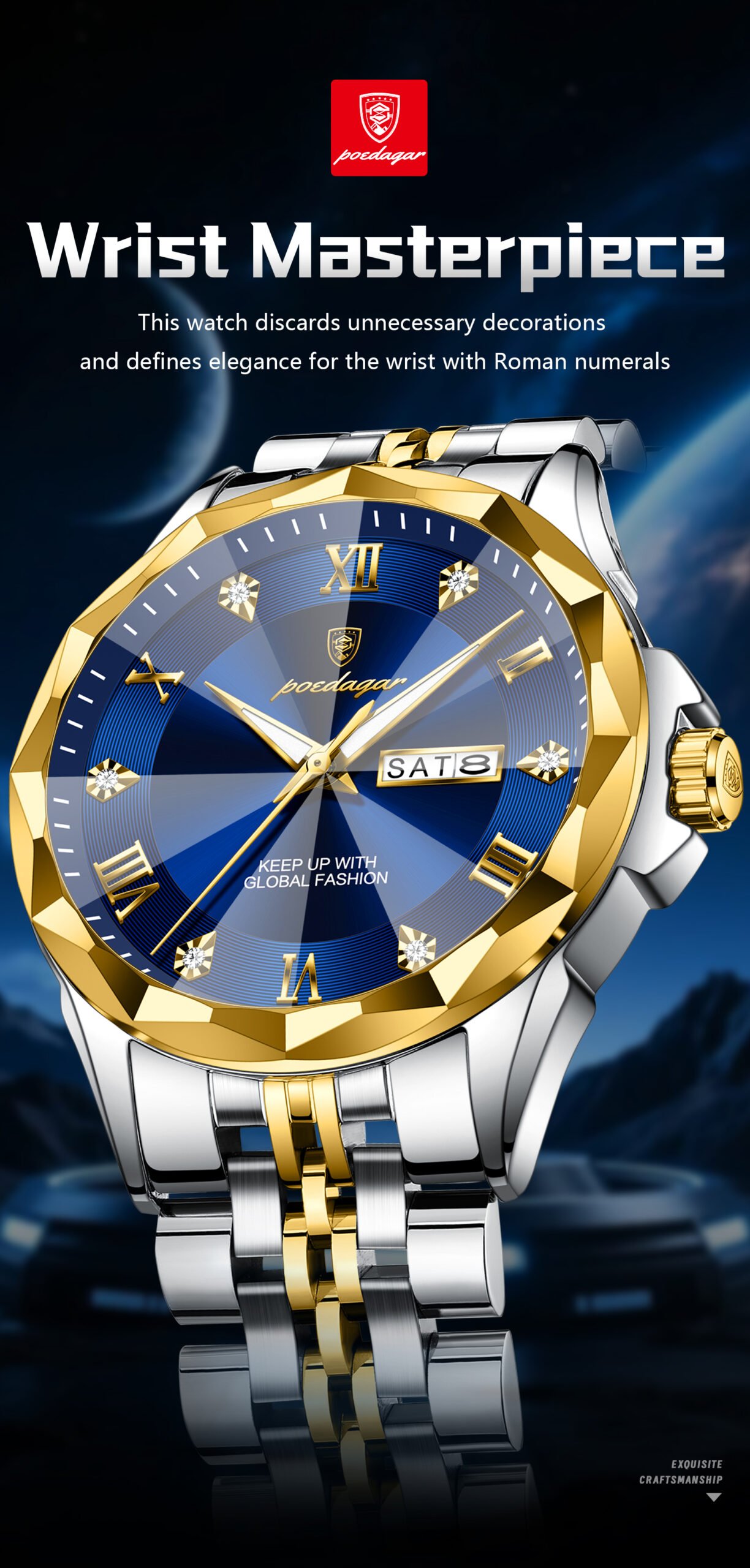 Every Poedagar watch is thoughtfully designed to blend classic elegance with modern trends. From durable stainless steel cases to finely-tuned quartz movements, our watches are built to last—and built to impress. Whether you're dressing for a boardroom, a night out, or your next adventure, there's a Poedagar timepiece made to complement your moment.