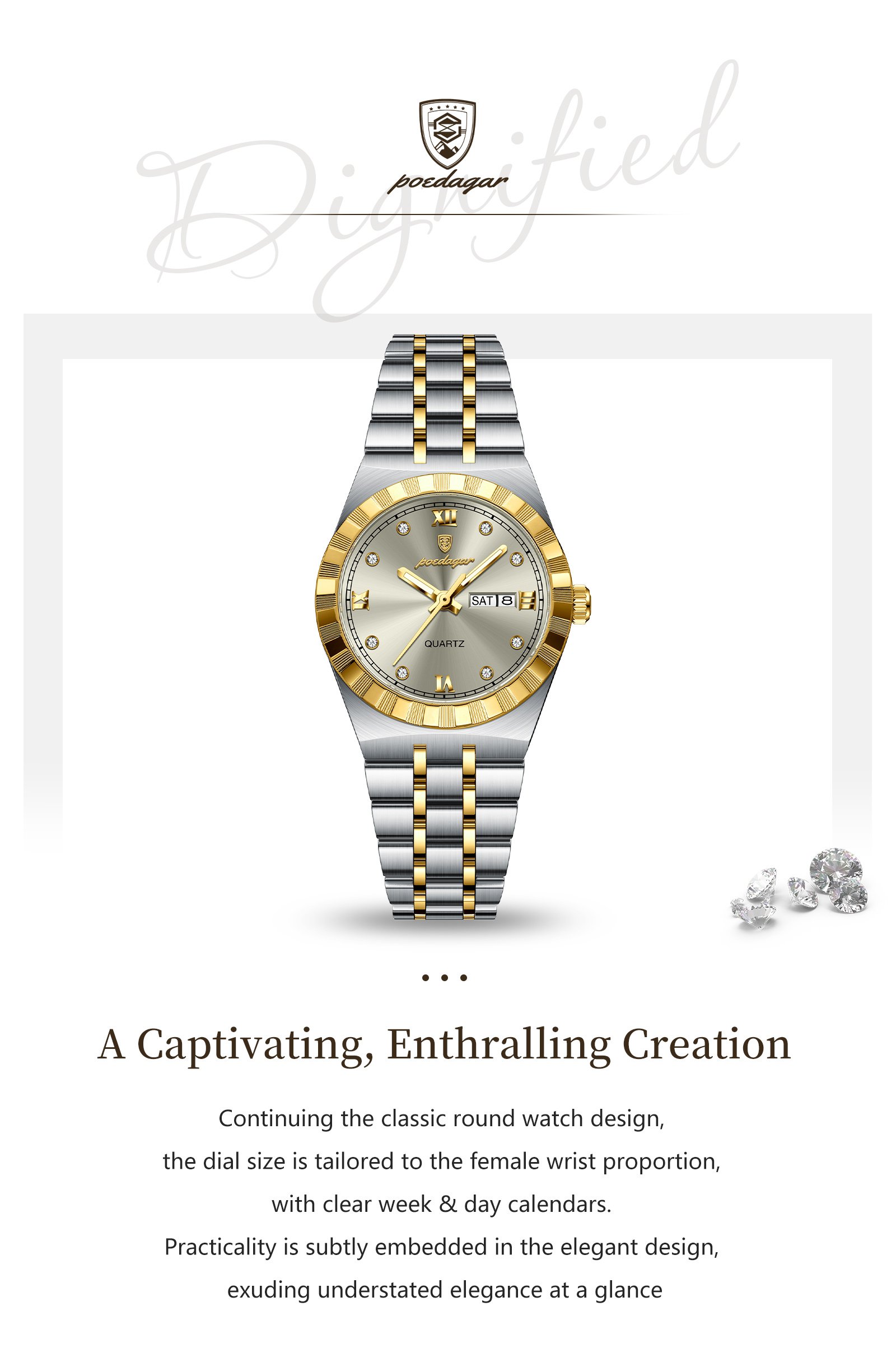 POEDAGAR 794 Luxury Original Ladies Watch Luminous Waterproof Week Date Woman Wristwatch Stainless Steel Women Quartz Watches Female