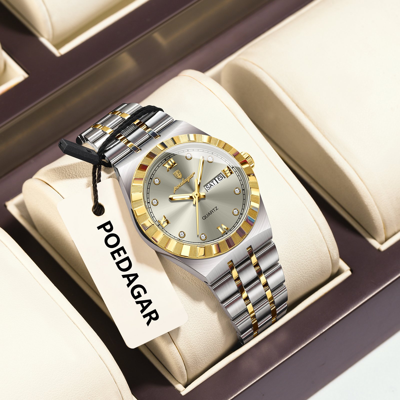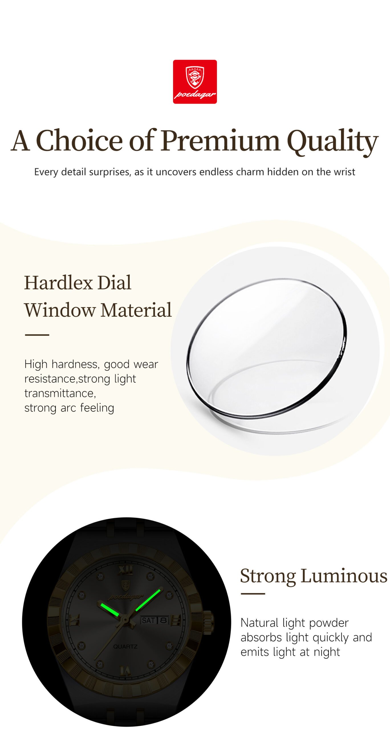 Every Poedagar watch is thoughtfully designed to blend classic elegance with modern trends. From durable stainless steel cases to finely-tuned quartz movements, our watches are built to last—and built to impress. Whether you're dressing for a boardroom, a night out, or your next adventure, there's a Poedagar timepiece made to complement your moment.