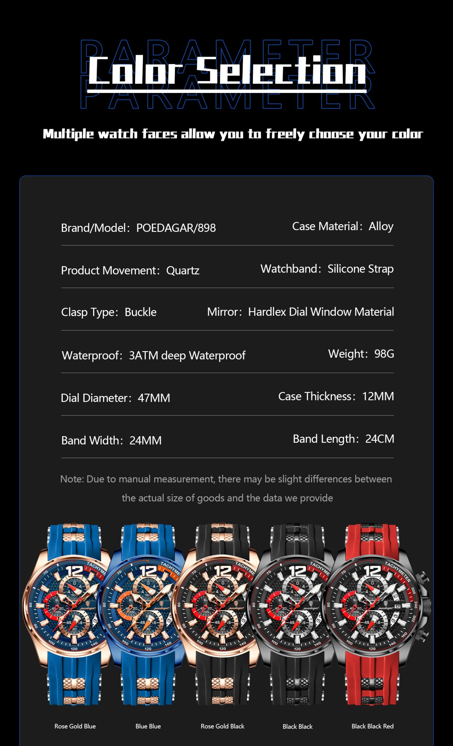 Every Poedagar watch is thoughtfully designed to blend classic elegance with modern trends. From durable stainless steel cases to finely-tuned quartz movements, our watches are built to last—and built to impress. Whether you're dressing for a boardroom, a night out, or your next adventure, there's a Poedagar timepiece made to complement your moment.