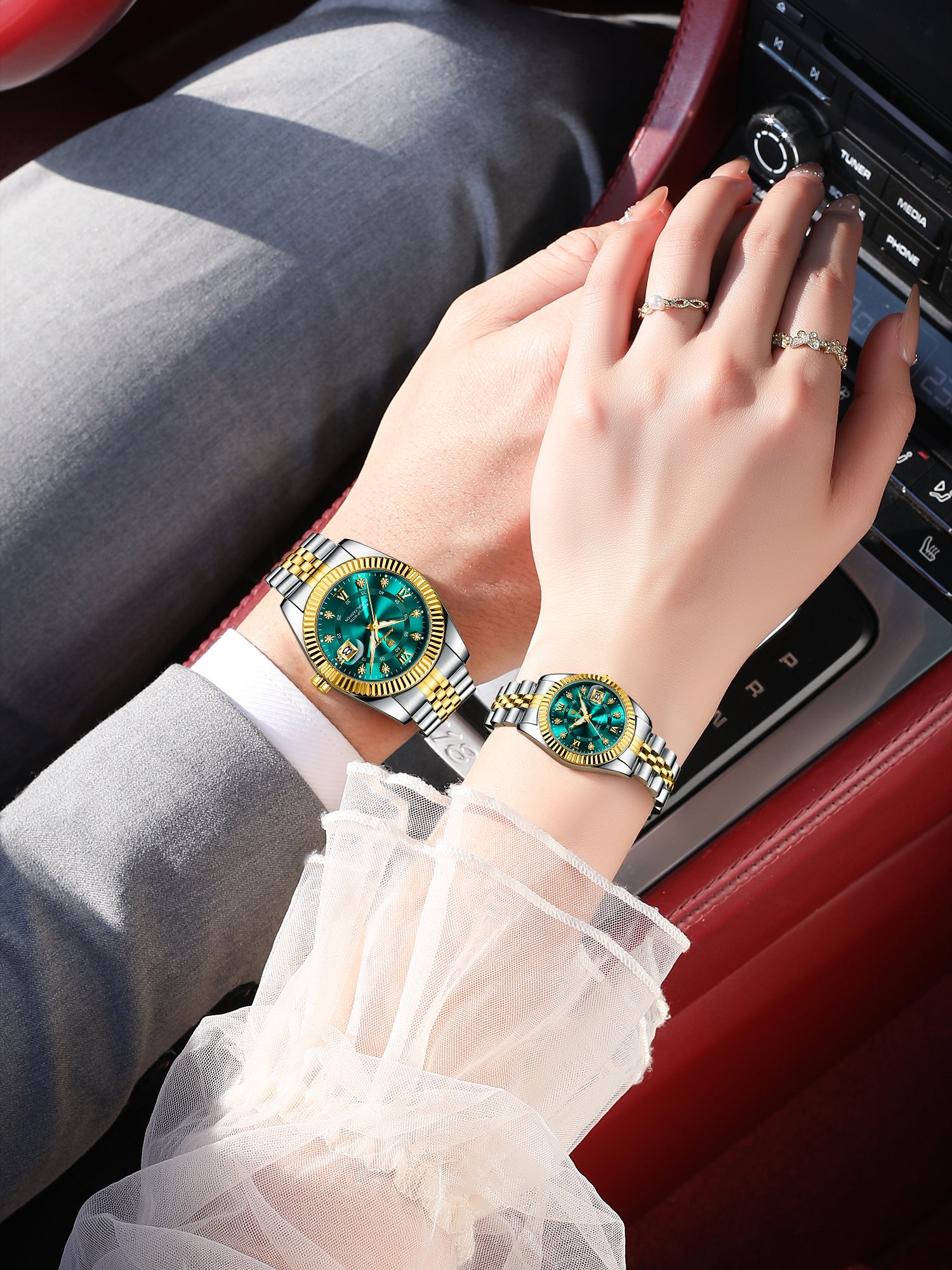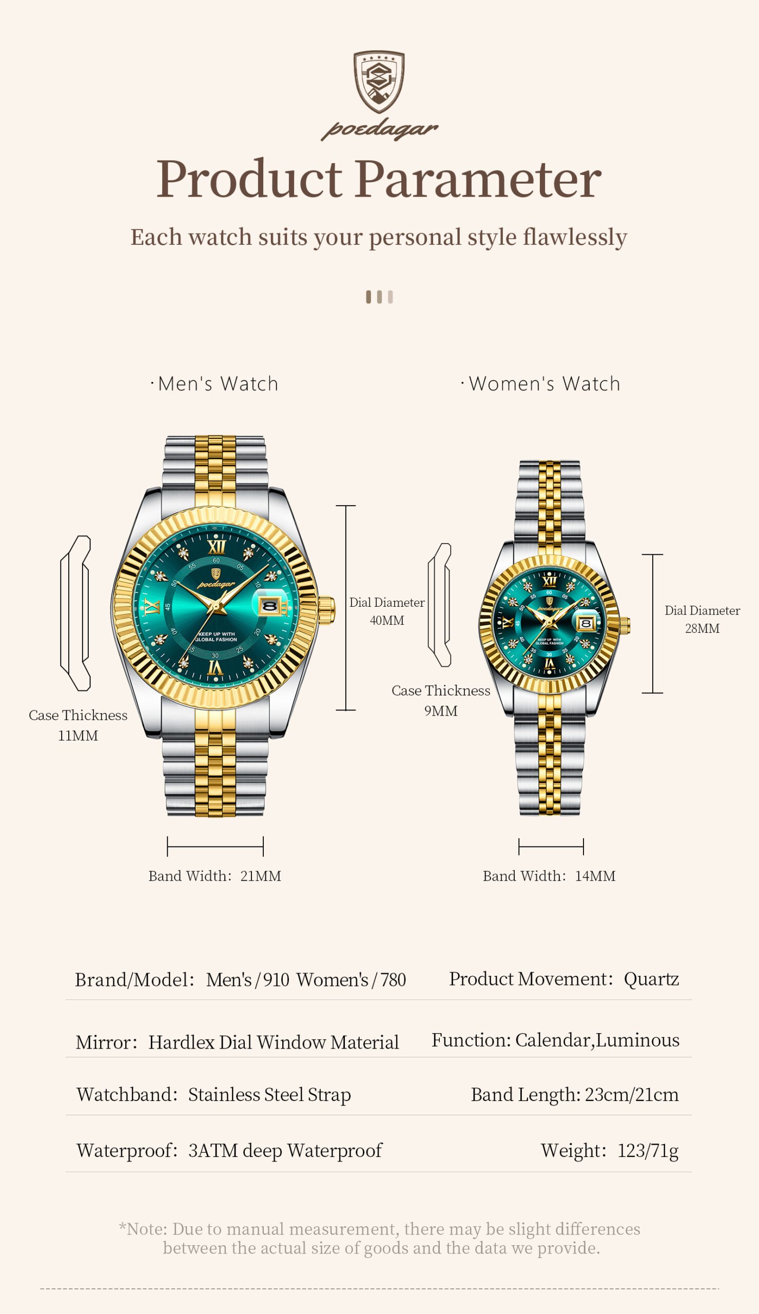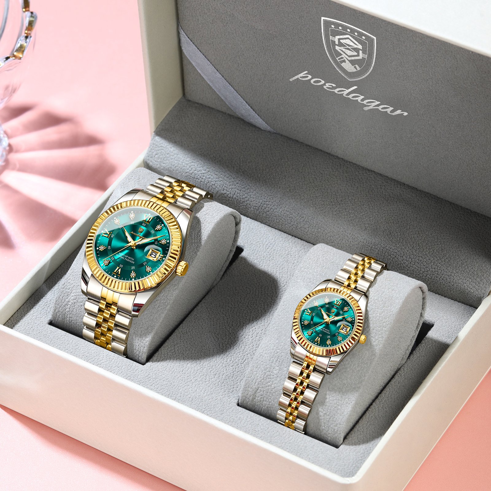 POEDAGAR 910 + 780 Top Fashion Watches For Couple Waterproof Date Week Couple’s Watches Quartz Stainless Steel Couple Watch Lovers Set+Box