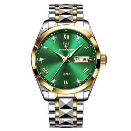 8 reviews for Poedagar 985 Green Dial Men Watch Green Dial Business Stainless Steel Quartz Watches Luxury Gold Waterproof Luminous Wristwatch Auto Week Date