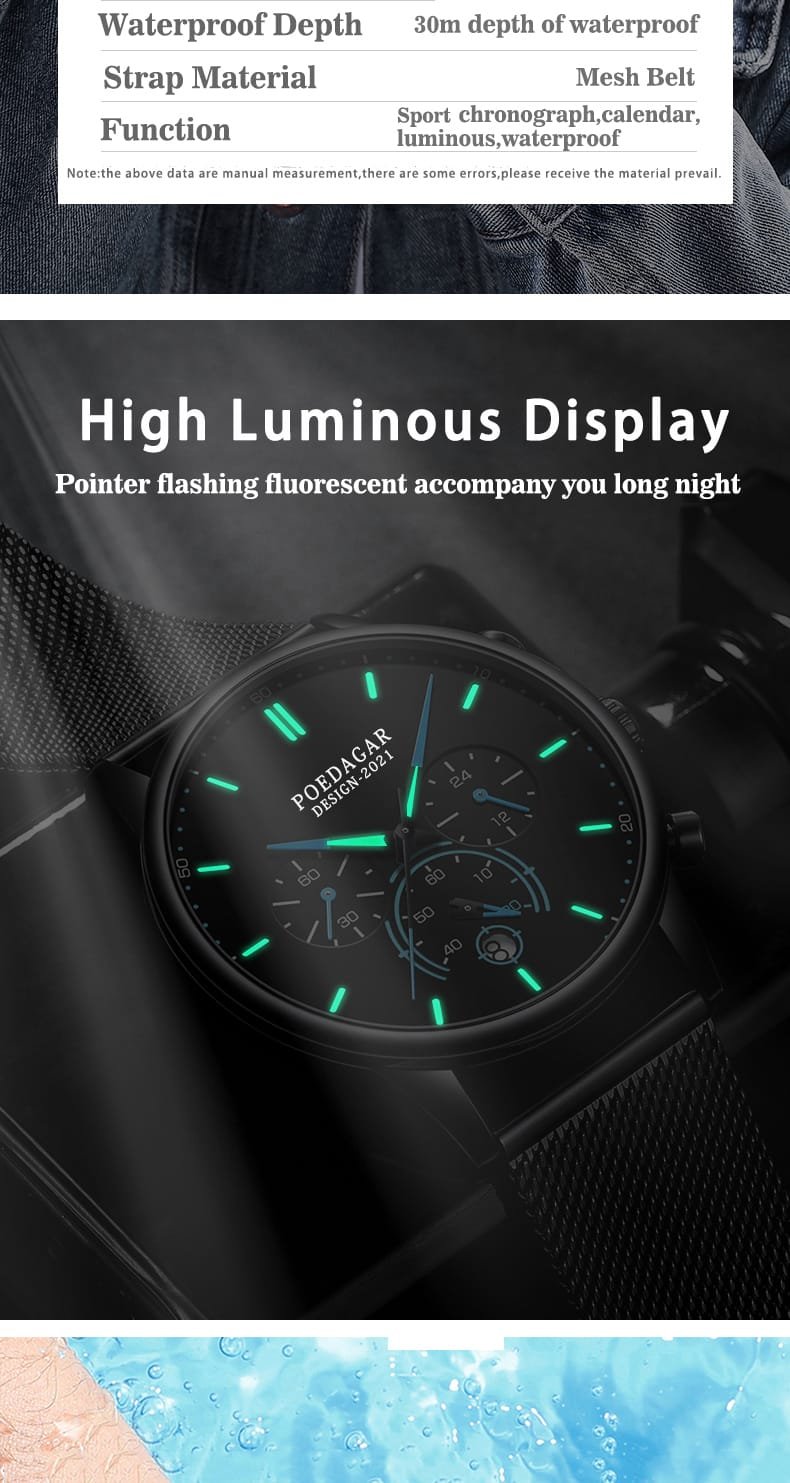 2 reviews for Poedagar 632 Ultra-Thin Mens Watches Ultra-Thin Minimalist Sport Chronograph Quartz Mesh Stainless Steel Watch Waterproof Luminous Fashion Wristwatch